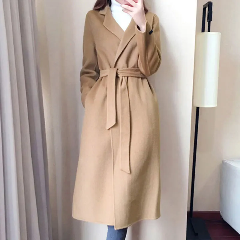 Женская куртка из смешанной шерсти, теплая зимняя куртка с длинным рукавом и поясом черного цвета, Приталенный кардиган, длинное пальто, осень 2019