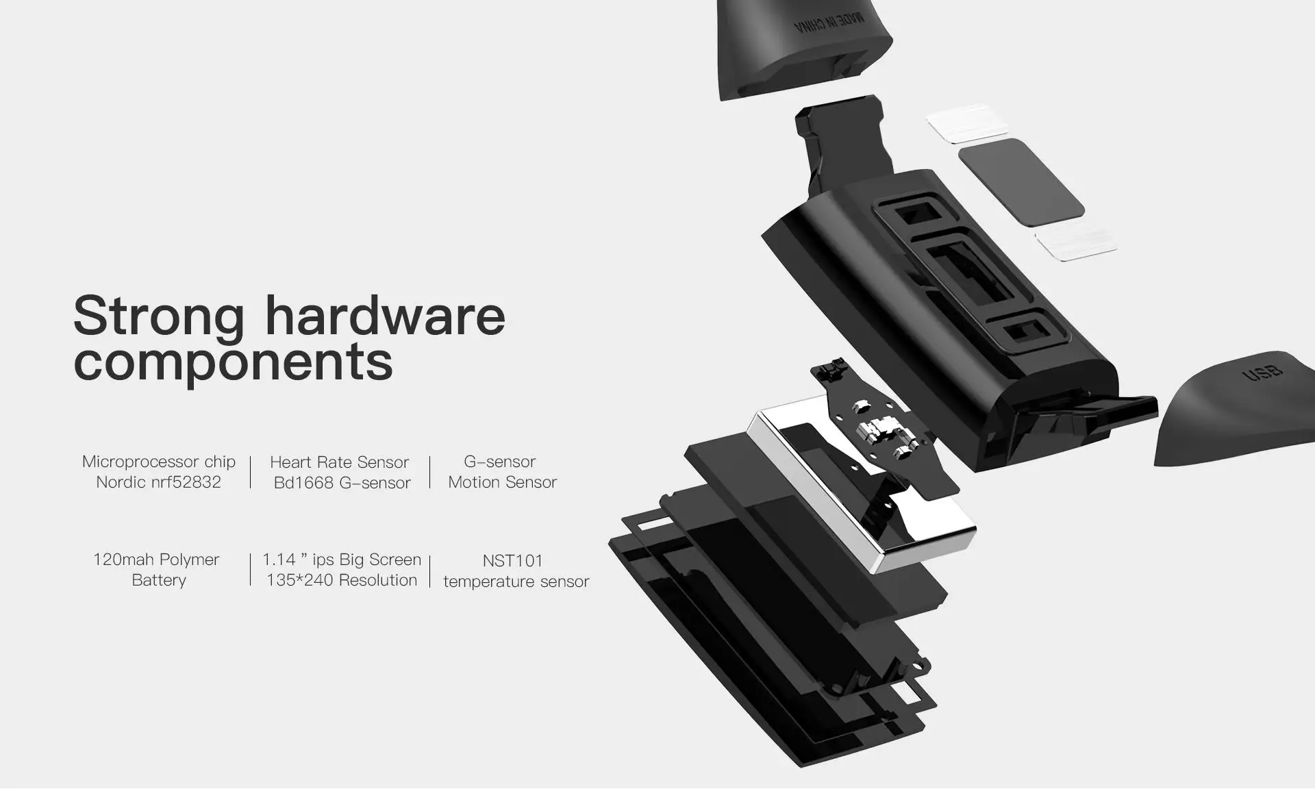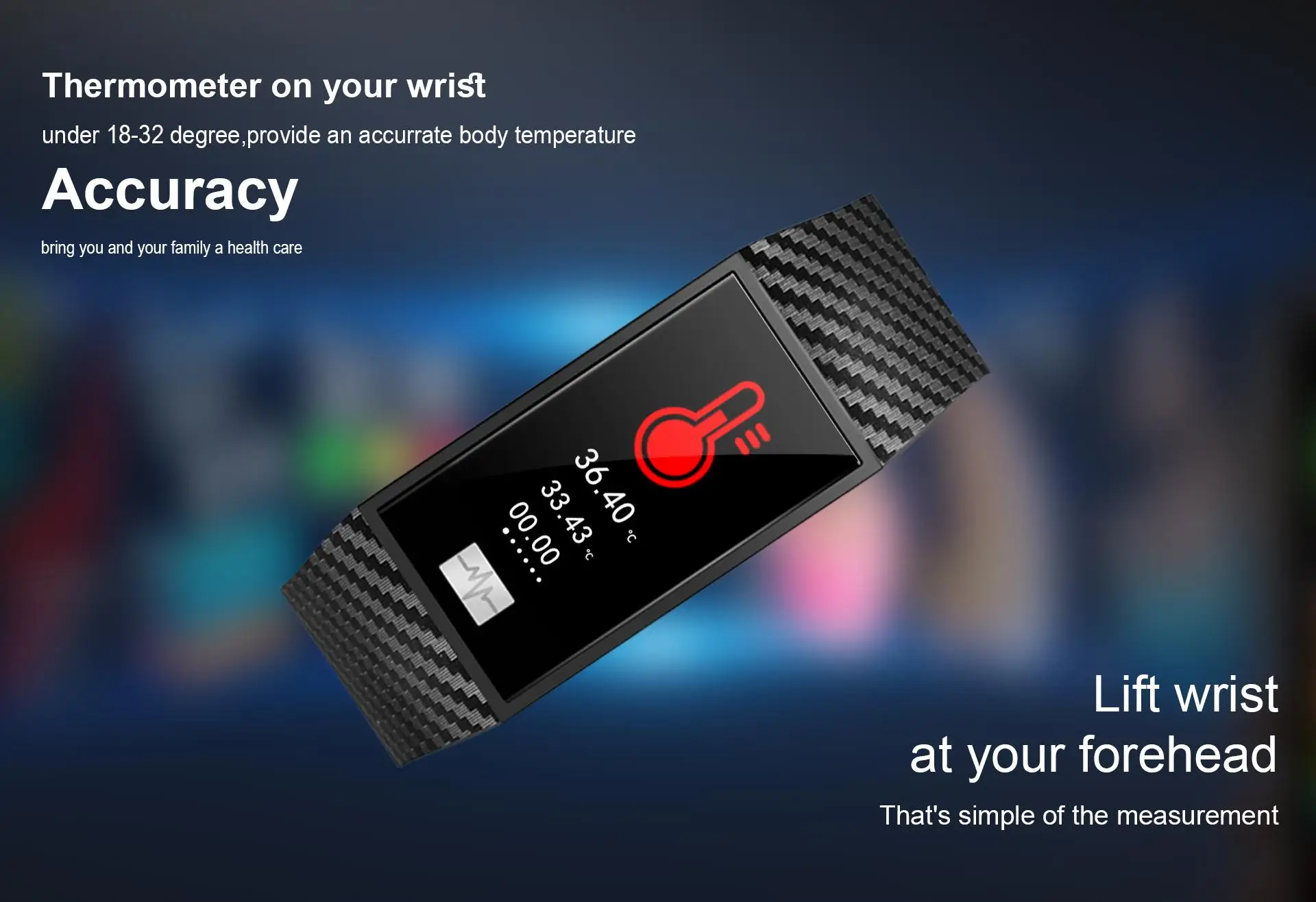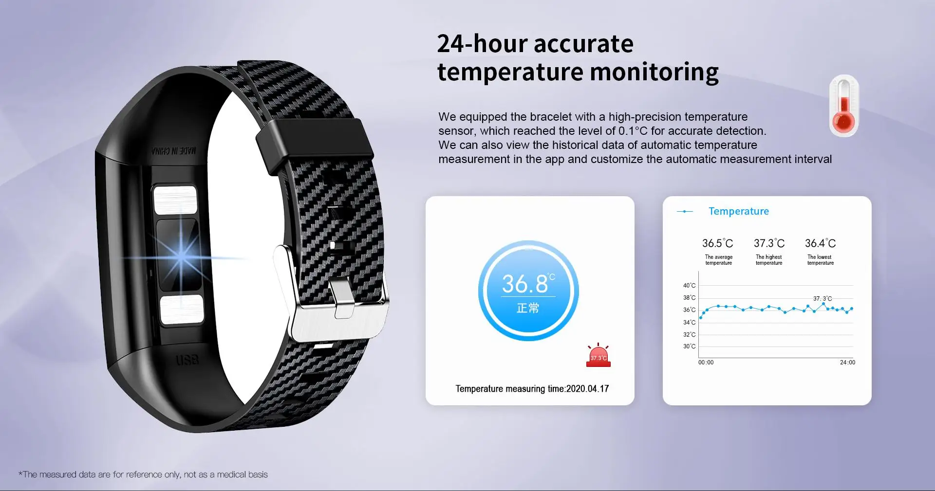 Мы снабдили браслет высокоточным датчиком температуры, который достигает уровня 0,1с для точного обнаружения
