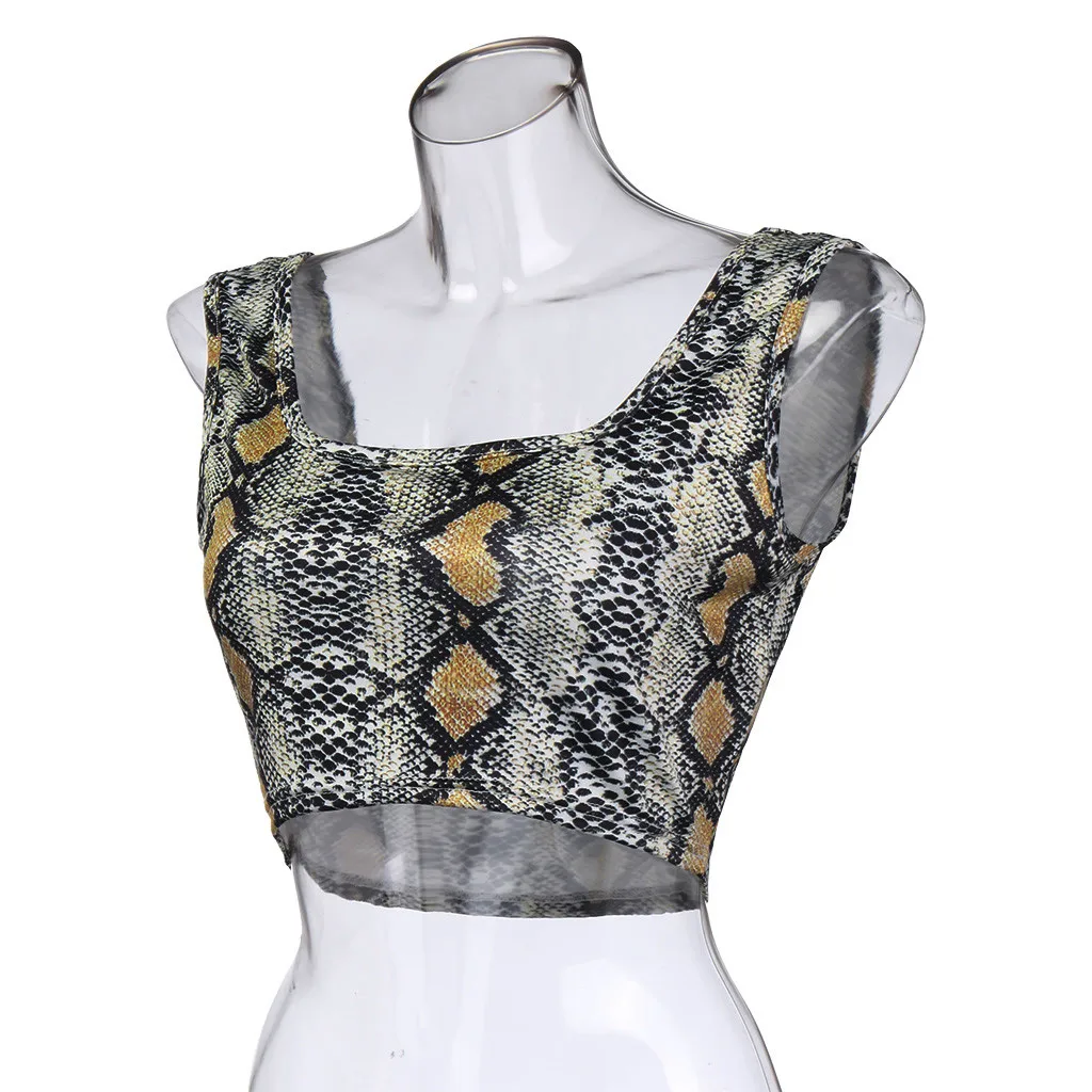 Модный женский квадратный воротник без рукавов с открытой спиной принт змеиной кожи укороченный топ