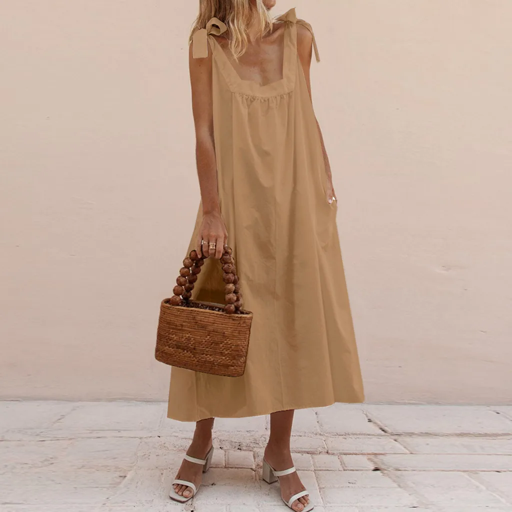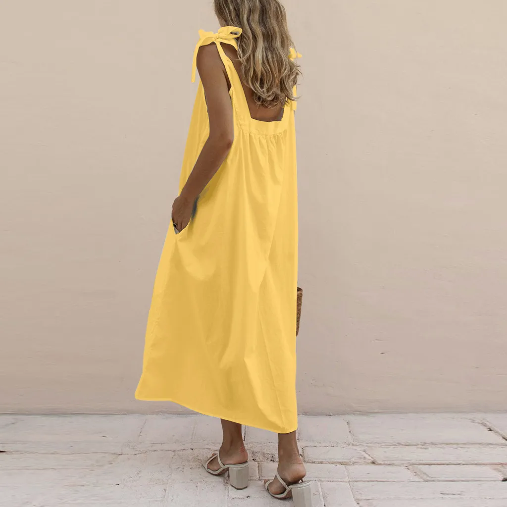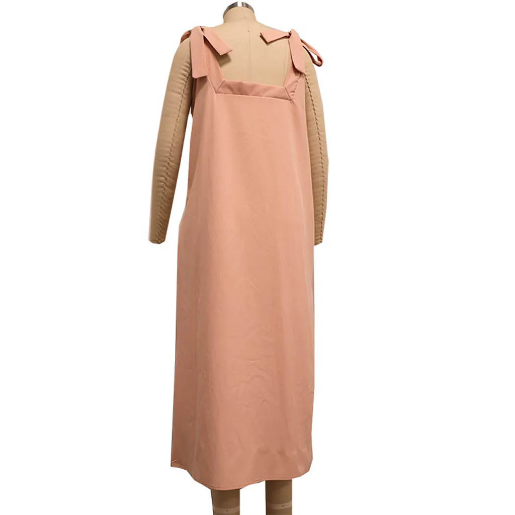 Модное женское Бандажное однотонное хлопковое льняное Повседневное платье с карманами