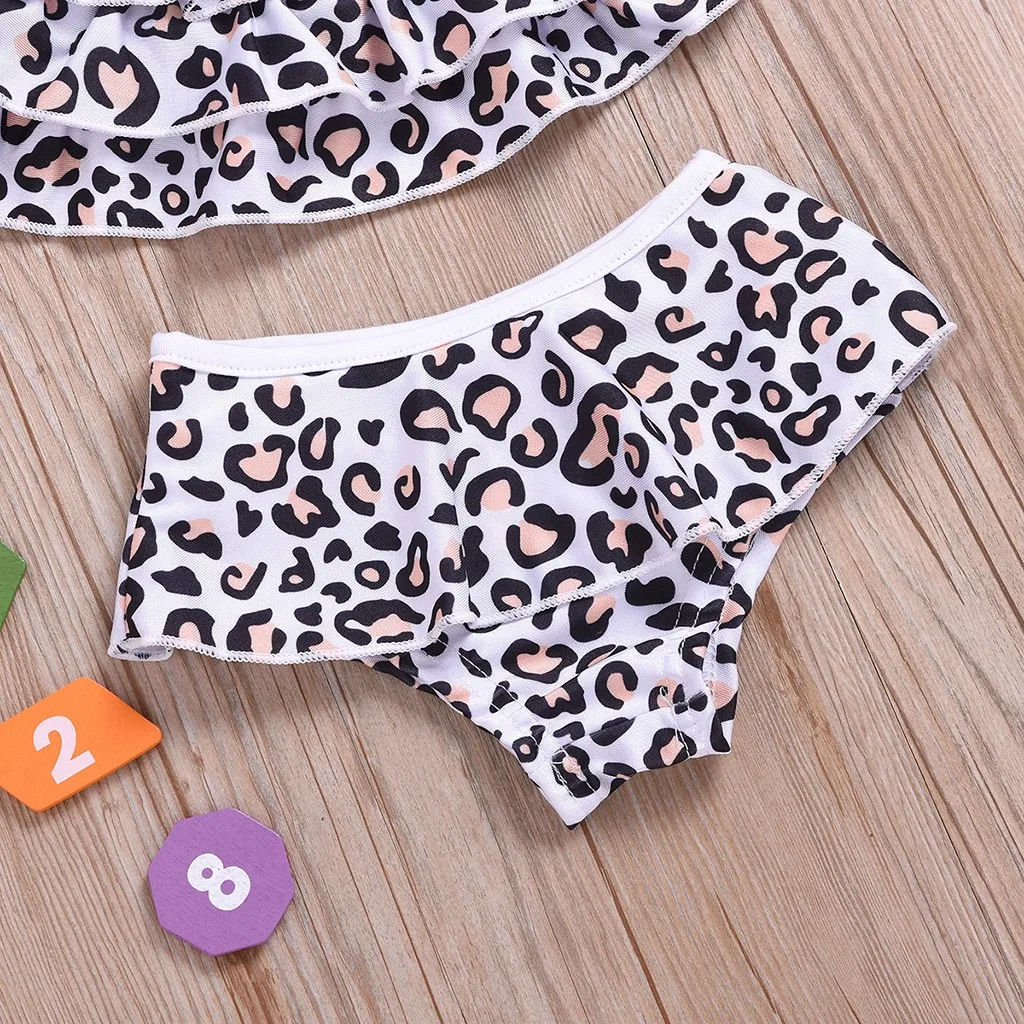 Детский бикини для девочек; пляжный купальник с леопардовым принтом + шорты; Комплект для купания