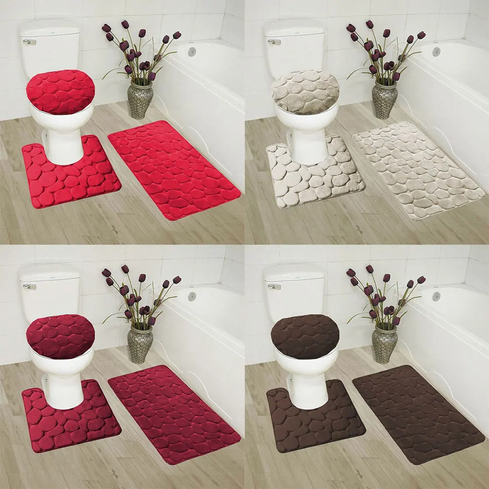 3 шт. Cobblestone дизайн коврик для ванной комнаты крышка для унитаза нескользящий пол контур кухонный коврик для ванной набор влагопоглащающая поверхность