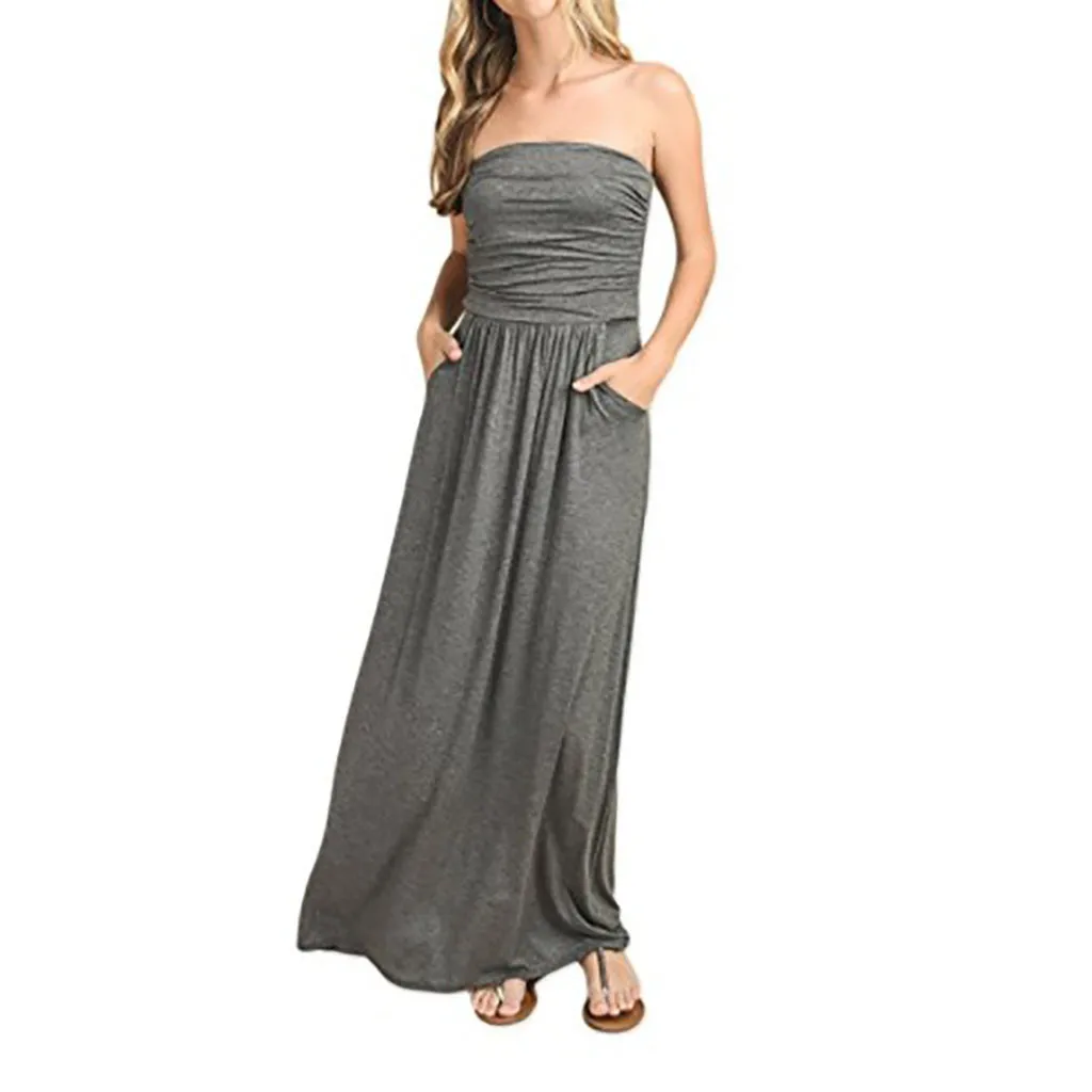Женское кружевное платье макси без рукавов с круглым вырезом, повседневное длинное платье с карманом