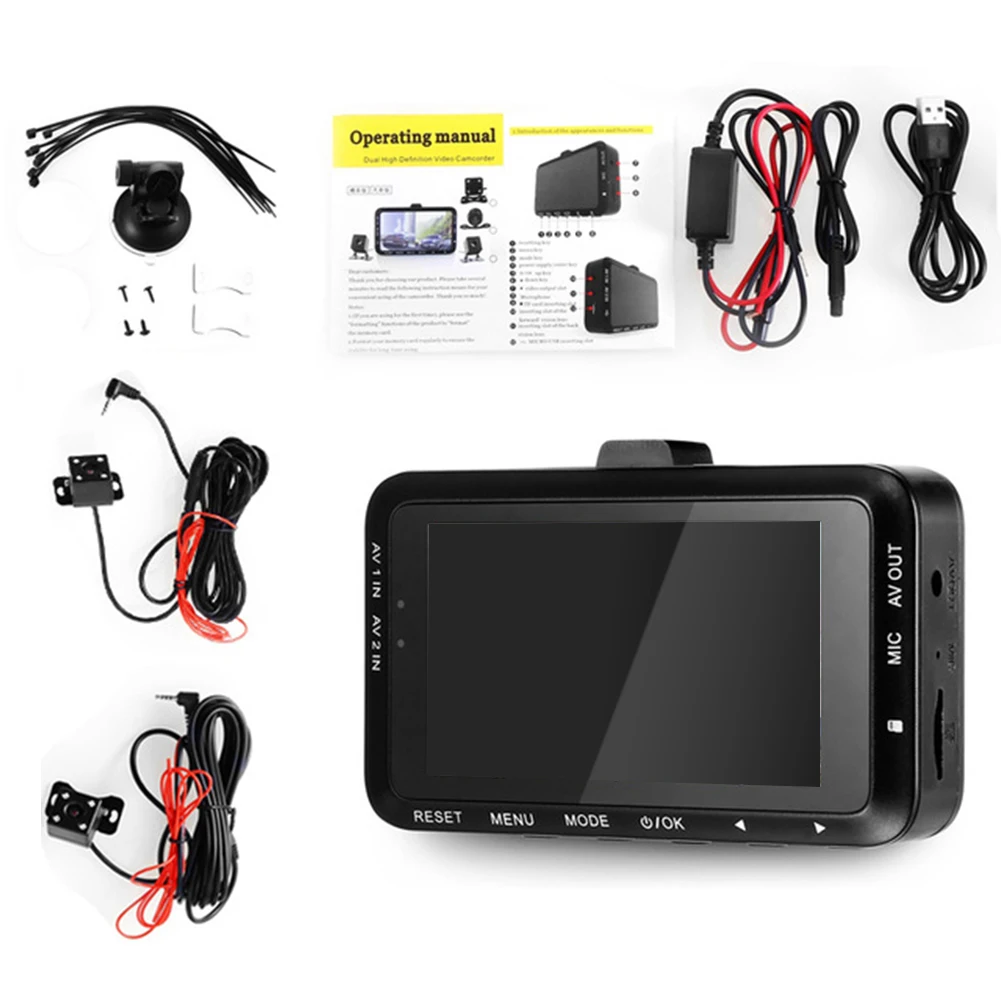 Новый стиль мотоцикл рекордер Dashcam Паровозик видеокамера двойной объектив Камера вождения рекордер g-сенсор циклическая запись