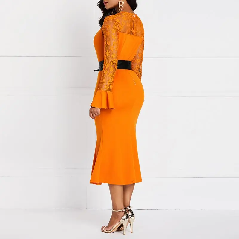 Женское облегающее платье оранжевого цвета, элегантное вечернее платье миди в африканском стиле, плиссированное прямое платье с рукавами-шалью, 2019