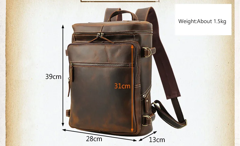 Материал: изготовлен из 100% из натуральной кожи из воловьей кожи Размер: 39*28*13 см (Д * Ш * В) Подходит для 15,6 дюймов ноутбука Пол: мужчины, женщины