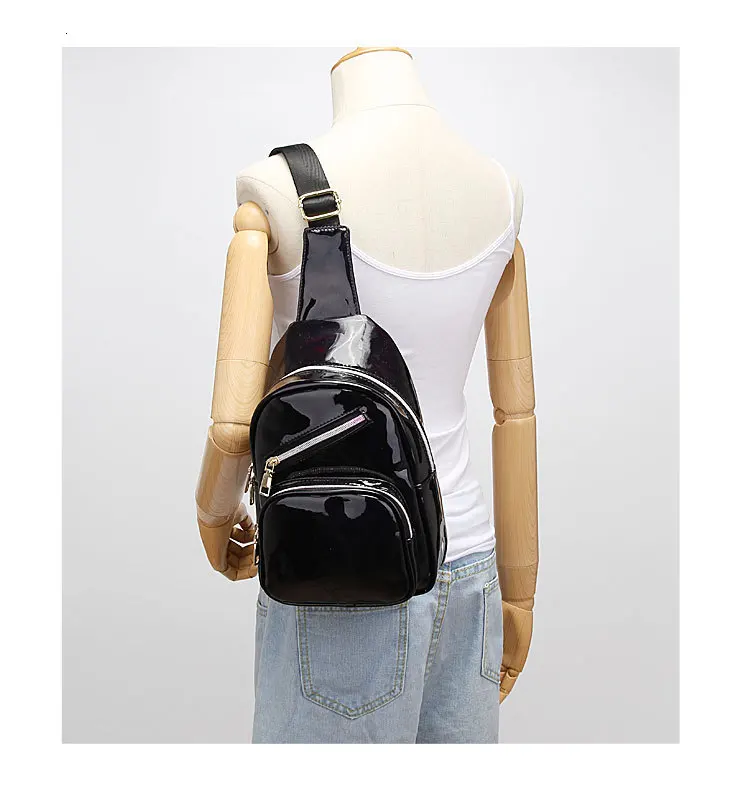 Женская модная лакированная Лазерная Волшебная цветная сумка из искусственной кожи для бега на груди, сумка на плечо