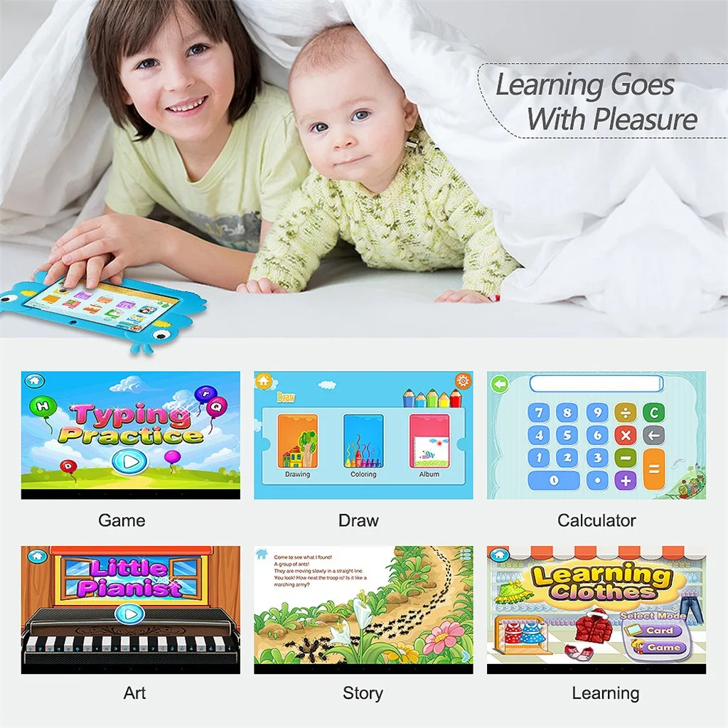 Лучший планшет как для детей, так и для родителей-с детским режимом предварительно установлен, нет необходимости беспокоиться о недfriendly енном материале в Интернете. Четырехъядерный процессор обеспечивает идеальное сочетание мощности, портативности и производительности. Вы получите универсальное мощное устройство.Отлично подходит для детей-с режимом ребенка, дети могут иметь свою собственную игровую площадка и дружественный интерфейс ребенка делает его легким в использовании. Они могут получить доступ к веселым и образовательным играм и видео, которые вы выбираете для них.Отлично подходит для родителей-с четырехъядерным процессором, все быстро поднимается. Он идеально подходит для чтения и просмотра видео, так как экран HD обеспечивает четкое содержимое.Портативность и простота использования для детей: Android 6,0 планшет 7 "HD дисплей четырехъядерный, 1024x600 HD экран с фронтальными и задними камерами, wifi, Bluetooth, 1 Гб ram/16 ГБ rom, вы можете увеличить объем памяти до 64 Гб с дополнительной картой micro SD для хранения фотографий, музыки и видео;Приложение iWawa с родительским контролем: детский режим предварительно установлен, с режимом детей, дети будут иметь свою собственную игровую площадка. С помощью встроенного родительского контроля родители могут управлять тем, что приложения, электронные книги для детей, чтобы играть и установить ограничение времени для детей. Родители могут создавать различные профили для разных детей, чтобы поделиться одним планшетом;Многофункциональные функции: предустановленный магазин Google Play, вы можете скачать бесплатные приложения для детей, модуль Wi-Fi позволяет просматривать веб-сайт, онлайн-музыку. Поддерживает Видеозвонок Skype, Netflix, Facebook, YouTube, Twitter и так далее. Встроенный Bluetooth позволяет сочетать с устройствами Bluetooth. Многофункциональный usb-порт даже позволяет заряжать другие устройства;Защитный чехол для детей: Изготовлен из высококачественного мягкого силикона, мягкий, прочный, легкий чехол против капель и ударов, вызванных детьми во время игры. Не нужно беспокоиться о любом возможном вреде. Дополнительная пластиковая подставка для планшета, чтобы помочь детям во время учебы, просмотра и игр. Не беспокойтесь держать планшет.Спецификация: