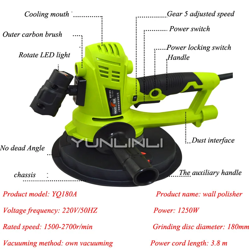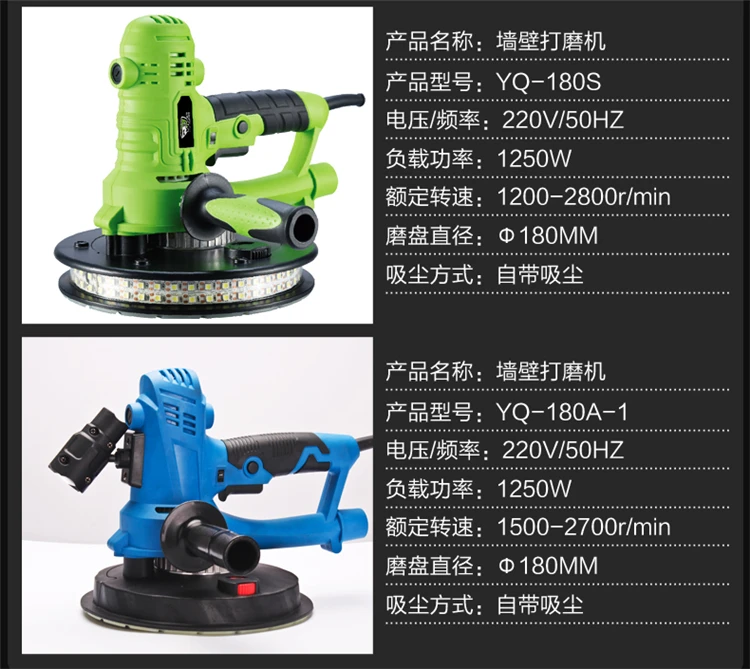 Многофункциональная шлифовальная машина для стен, электрическое настенное шлифование наждачной бумагой, шлифовальная машина, полировщик, наждачная бумага, без пыли, YQ-180