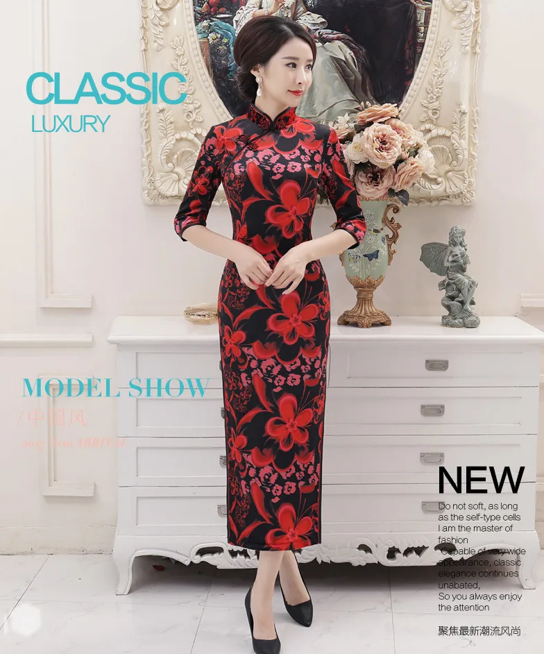 4XL бархатные Длинные платья Qi Pao Китай пион узор Осень зимний чеонгам длинные бархатные ткани традиционное платье для мамы большой размер