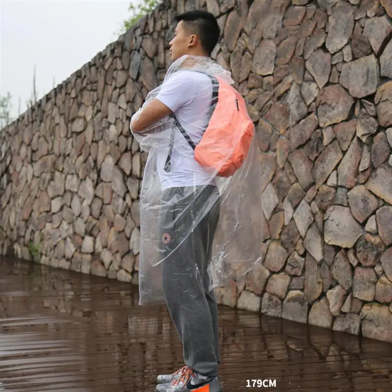 Одноразовые плащи с капюшоном на шнурке, эластичные рукава, прозрачные, для велоспорта, портативные дождевики, пончо для дождя для мужчин и взрослых женщин