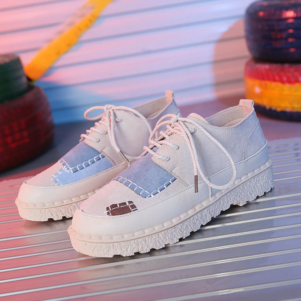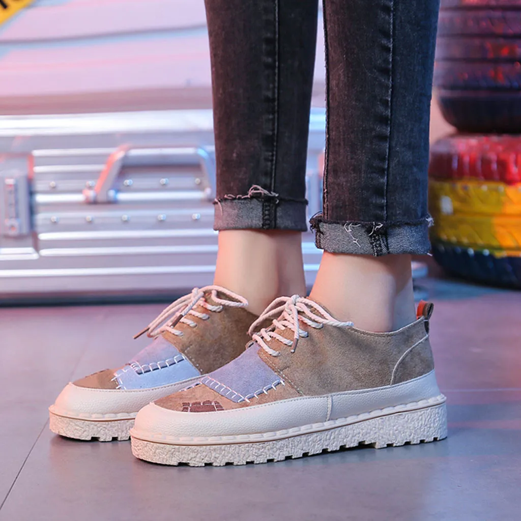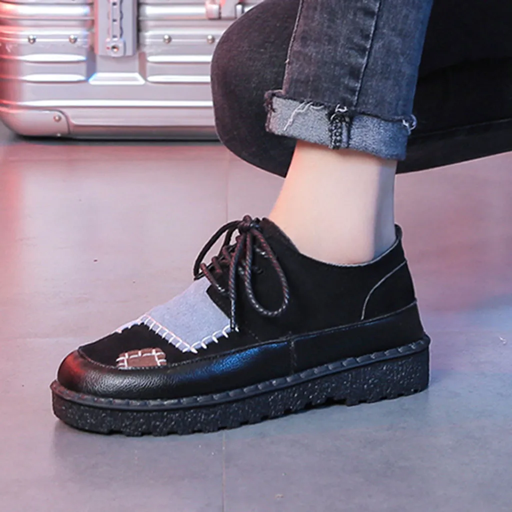 Для женщинЖенские Модные Лоскутные Повседневные лоферы с круглым носком на плоской подошвеКроссовки