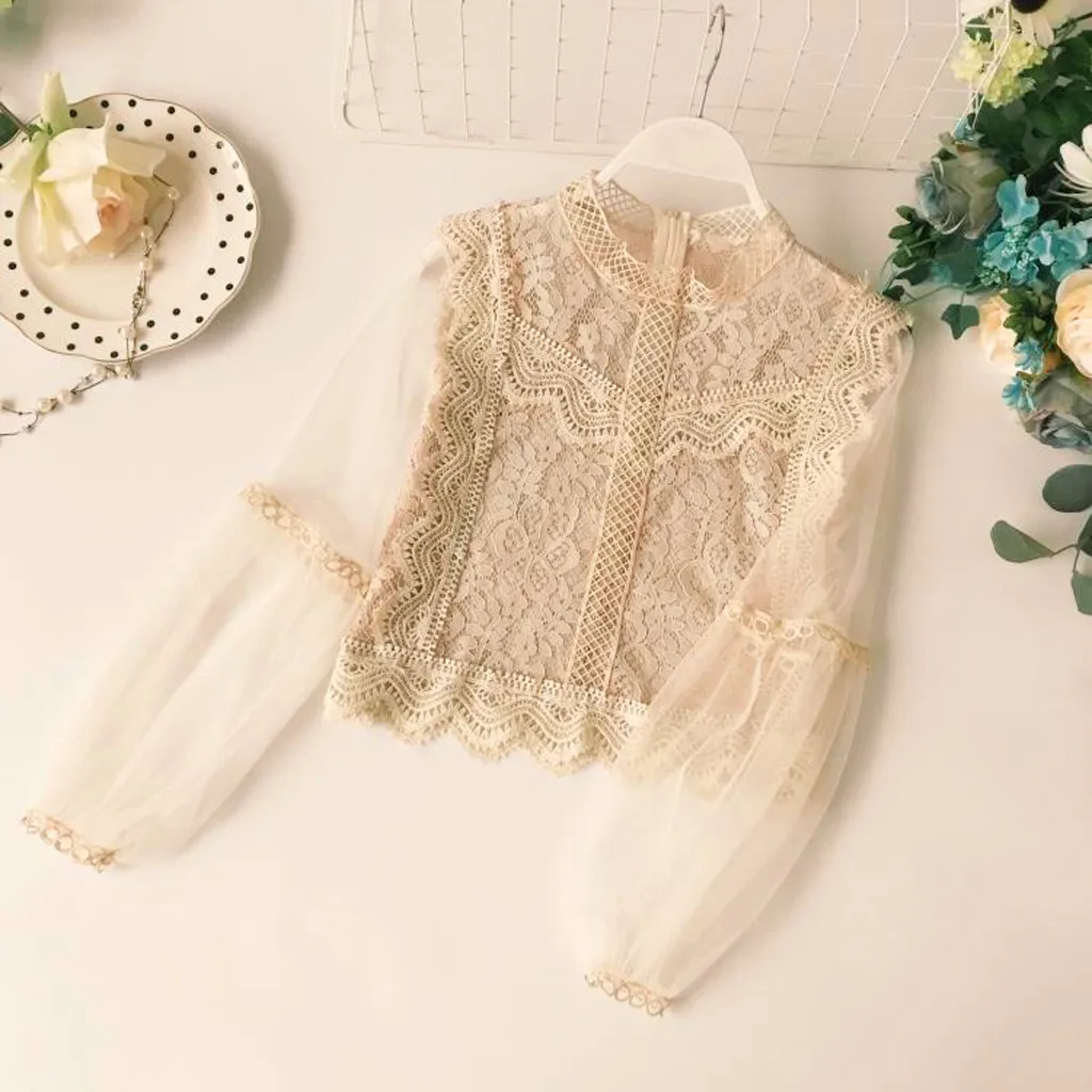 Женские летние сексуальные цветочные кружева с длинным рукавом Прозрачная короткая Футболка Топ Блузка