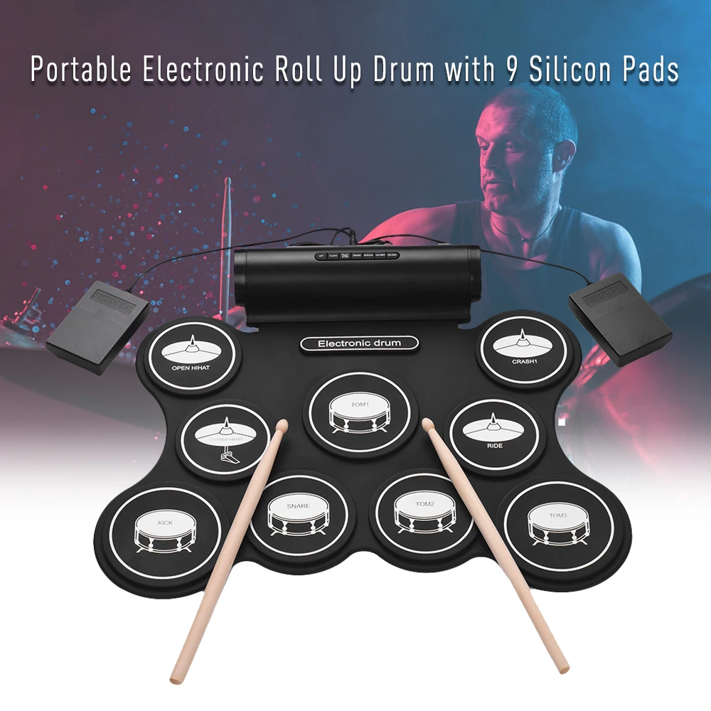 Этот портативный рулонный электронный барабанный набор идеально подходит для барабанного набора обучения и практики детей или начинающих, для семейных развлечений и сбора друзей.