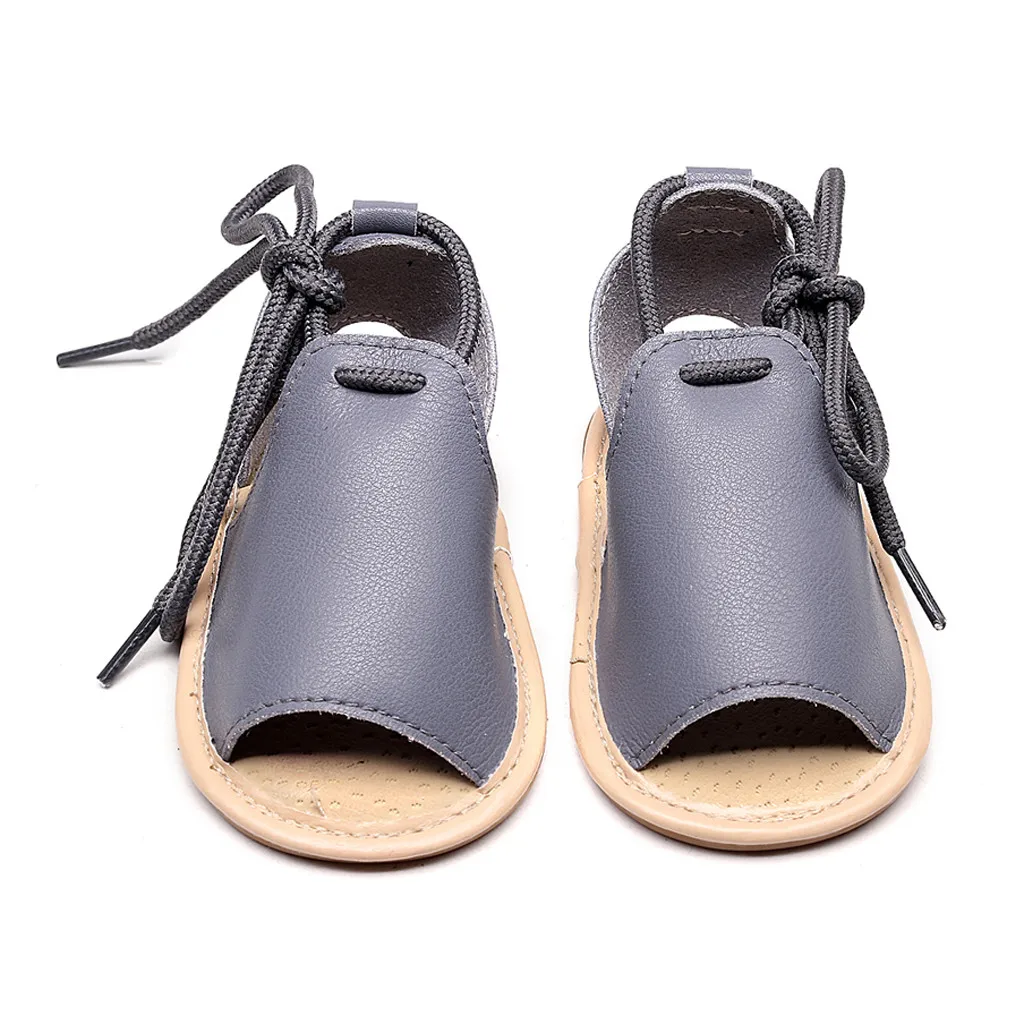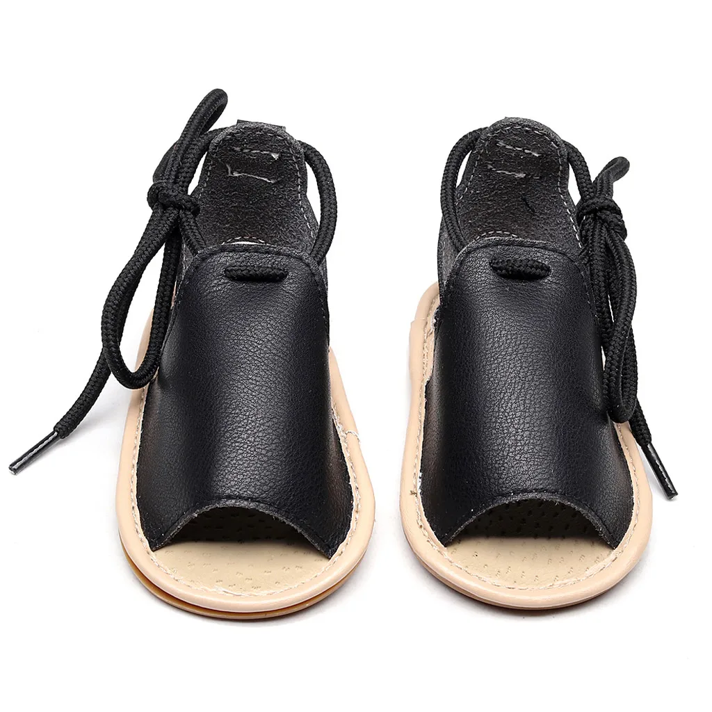 Пляжные кожаные летние сандалии с резиновой подошвой для маленьких девочек; Обувь для первых шагов
