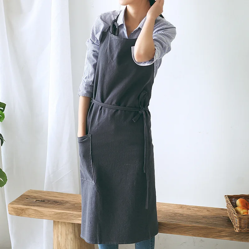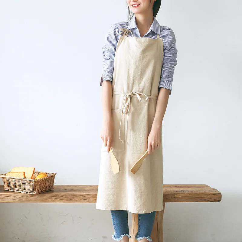 Японский льняной простой фартук мягкий и удобный противообрастающий тонкий длинный фартук Кофейня выпечки магазин комбинезоны