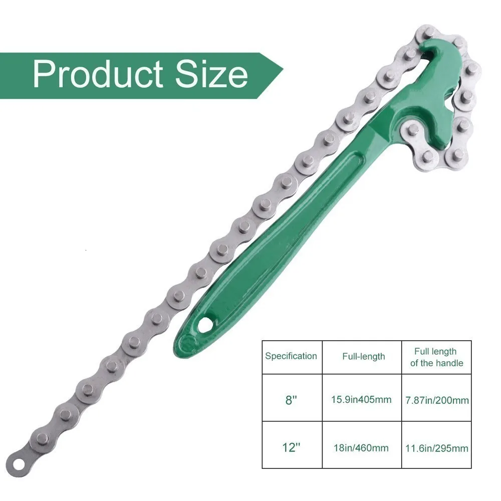 Гаечный ключ для масляной цепи, сетчатый фильтр, цепной гаечный ключ, 8/12 дюймов, масляный топливный фильтр, гаечный ключ, инструмент для удаления, инструмент для автоматического обслуживания