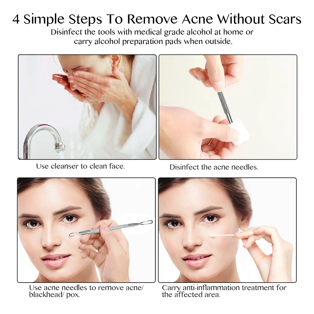 1. Никогда не пытайтесь выбрать или Сдавить пятна, так как он синяет кожу и может привести к рубцам. Чтобы минимизировать повреждение кожи. 2. Правильное время для удаления черных точек находится сразу после душа или используйте теплое полотенце для лица в течение примерно 1-2 минут, так как пар открывает поры. 3. Просто поместите конец петли на верхнюю часть черных точек и аккуратно нажмите. Он должен легко выскакивать. При необходимости используйте иглу и тщательно выберите поверхность кожи, если поры не созрели. 4. Использование этого средства для удаления является одним из самых безопасных способов очистить поры, а не сжимать черные точки с помощью ногтей. Это также уменьшит травму окружающей кожи 5. Чтобы минимизировать повреждение кожи, это эффективный способ удаления черных точек, просто поместите концевой конец поверх черных точек и аккуратно нажмите, он должен просто выскочить легко.