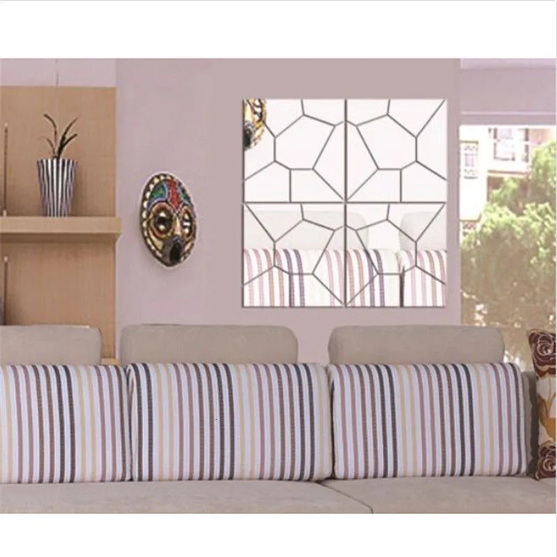 Особенности:1. Водонепроницаемый и экологичный 2. Красивое украшение для вашего дома, спальни и т. д. 3. Вы можете получить новый дизайн в течение нескольких минут 4. Современный способ завершения дизайна интерьера вашего дома или комнаты. 5. Эта Наклейка на стену подходит для любой гладкой, плоской, сухой и пыльной зоны, вы можете украсить спальню, гостиную, офис и т. д. Описание: 1. Материал: PS 2. Цвет: серебристый 3. Размер: Д * Ш/20*20 см/8 ''* 8'' Посылка включает: 1 x Зеркальная Наклейка (в том числе 7 шт формы квадратной формы)