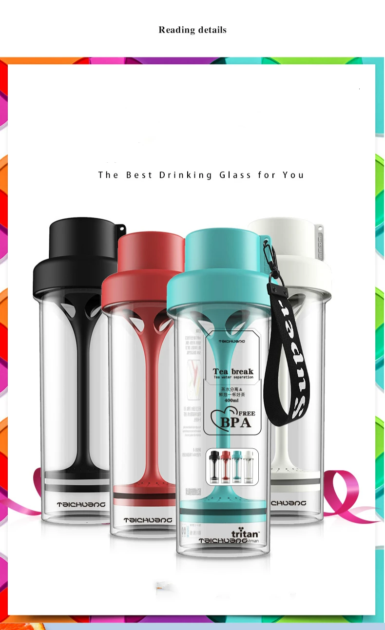 Soffe 400 мл пластиковая тритановая бутылка для воды Bpa бесплатно с крышкой веревка фруктовый чай заварка бутылка для воды спортивные портативные бутылки для лимонного сока