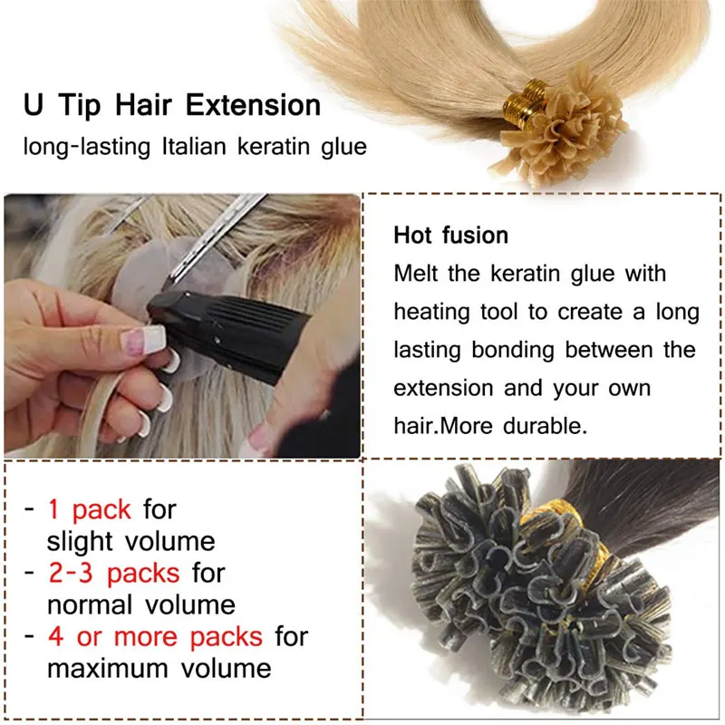 Тип изделия: U ногти/наращивание волос для ногтей Материал: 100% человеческие волосы, нет другой смеси Тип волос: бразильские волосы Длина: 16 "18" 20 "22" 24" Вес и упаковка: 1 г/прядь, 50 нитей = 50 г Примечание: Каждая посылка имеет 50 нитей, поэтому, когда вы выбираете 50 нитей, вы получите 1 посылка s, когда вы выбираете 100 нитей, Вы получите 2 посылка s Доступные цвета: 1 #, 1B #, 2 #, 4 #, 6 #, 12 #, 24 #, 27 #, 60 #, 613 #, P4 / 27 #, p18/613, p12 / 613 Использование: наконечник кератинового клея, легко прилипает, легко снимается, мягкий и удобный на голове Сколько упаковок мне нужно? Для полной головки мы предлагаем 2 упаковки или более (100-150 нитей). Для полуголовки мы предлагаем 1 упаковку или более (50-100 нитей). Для более коротких волос мы предлагаем добавить еще 25 прядей из-за длинной длины волос, чтобы вы могли создать естественный вид.