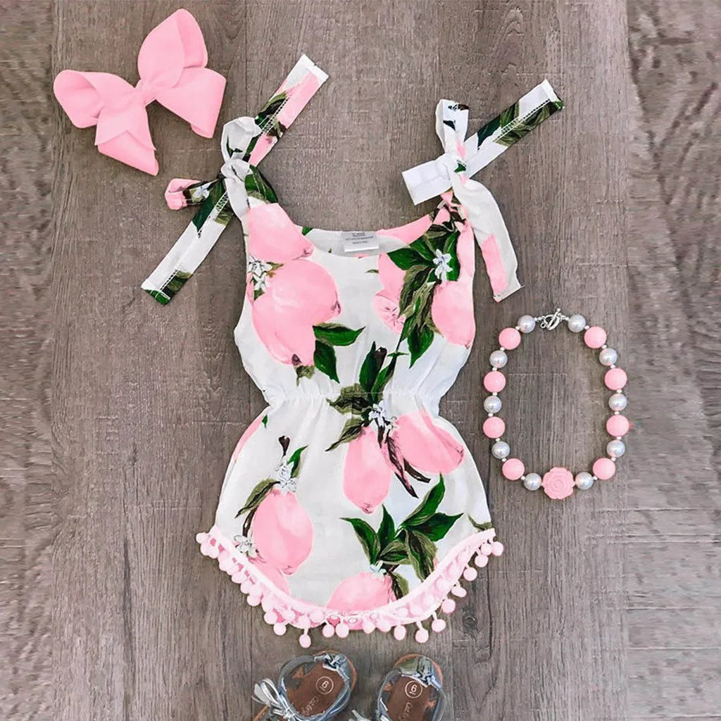 Комбинезон без рукавов с принтом персикового цвета для маленьких мальчиков и девочек; Комбинезон; Боди