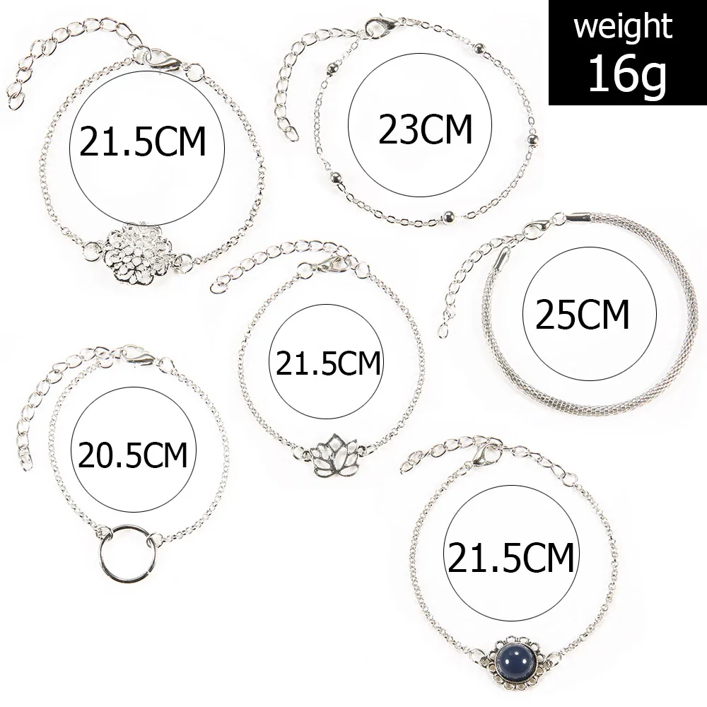6 шт./компл. браслет с подвеской в виде листьев лотоса круглый камень цветок бусы цепочка Многослойные Регулируемые браслеты для женщин вечерние ювелирные изделия