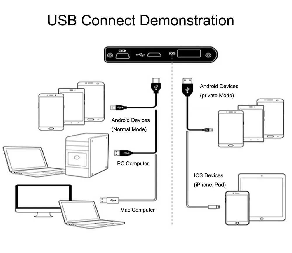 Пожалуйста, загрузите плеер Haibei на каждый бренд рынка мобильный телефон, используйте специальный соединительный кабель Android, предоставленный в продукте, и включите мобильный телефон в режиме разработчика (функция отладки USB), пожалуйста, обратитесь к руководству на каждый мобильный телефон.