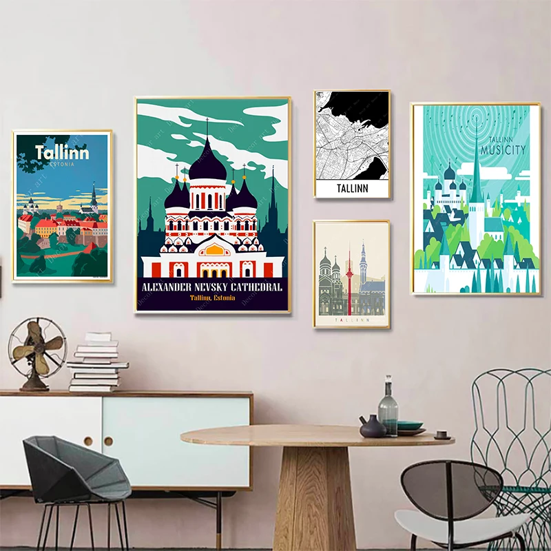 Таллинн, Эстония, холст для путешествий в приморском стиле, винтажные настенные крафт-плакаты с покрытием, настенная наклейка, украшение для дома, подарок