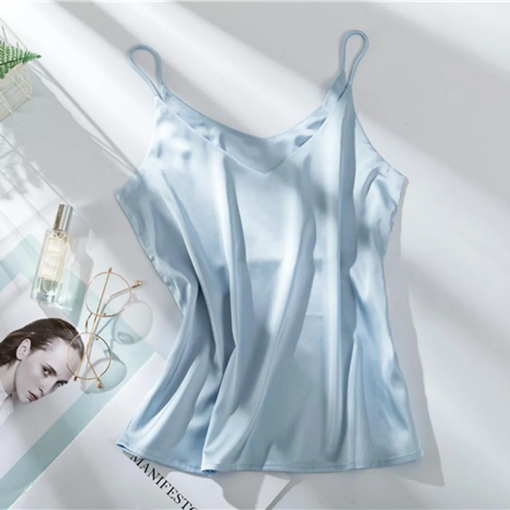 Женская Повседневная шелковая атласная майка на бретелях без рукавов