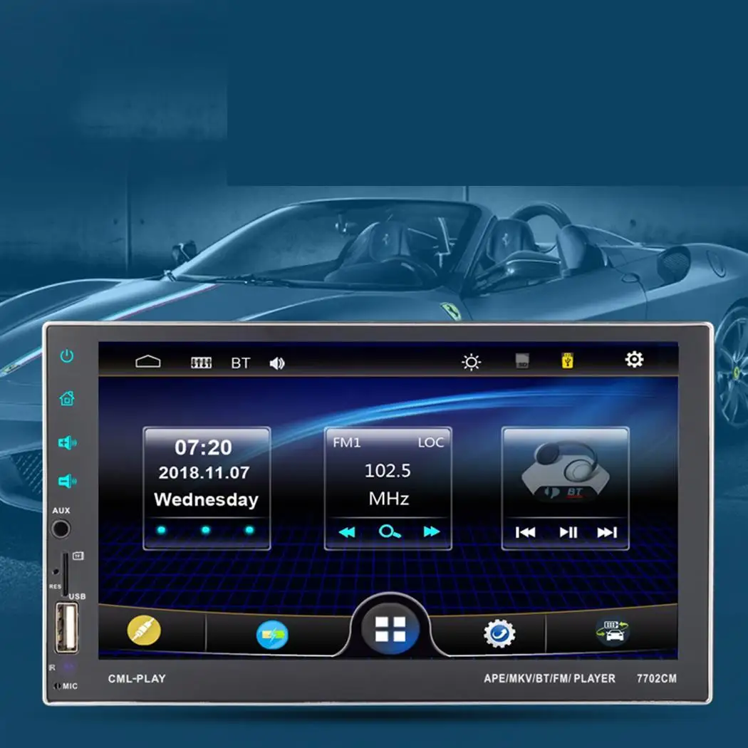 Модель: 7702 см Материал: пластик Цвет: черный 2 типа на ваш выбор Тип: с камерой, без камеры Размер: 17,8x10,2x6,5 см/7x4x2,6 дюйма Размер дисплея: 7 дюймов Разрешение: 1024x600 Bluetooth: Да Функция: FM, двойной USB, tf-карта, камера заднего вида, цветная подсветка Тип товара: Автомобильный мультимедийный плеер Количество: 1 шт. Особенности: Поддержка Bluetooth hands free call и функции MP5 music play. Поддержка аудиоформатов APE, MKV, BT, FM. Поддерживает два USB, устройства для хранения tf-карт. Поддержка функции камеры заднего вида. Красочные и дополнительные настройки подсветки. Поддержка USB портов зарядки для мобильного телефона. Утолщенный радиатор для обеспечения нормальной работы машины. Содержимое упаковки: 1 Автомобильный мультимедийный плеер, 1 пульт дистанционного управления, 1 камера (для типа камеры) Примечание: Из-за разницы между различными мониторами изображение может не отражать фактический цвет изделия.