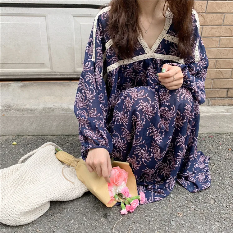 Женские свободные платья в японском стиле, повседневный комбинезон, зеленый цветочный принт, v-образный вырез, пэчворк, живот, Макс, платье, плюс размер, одежда