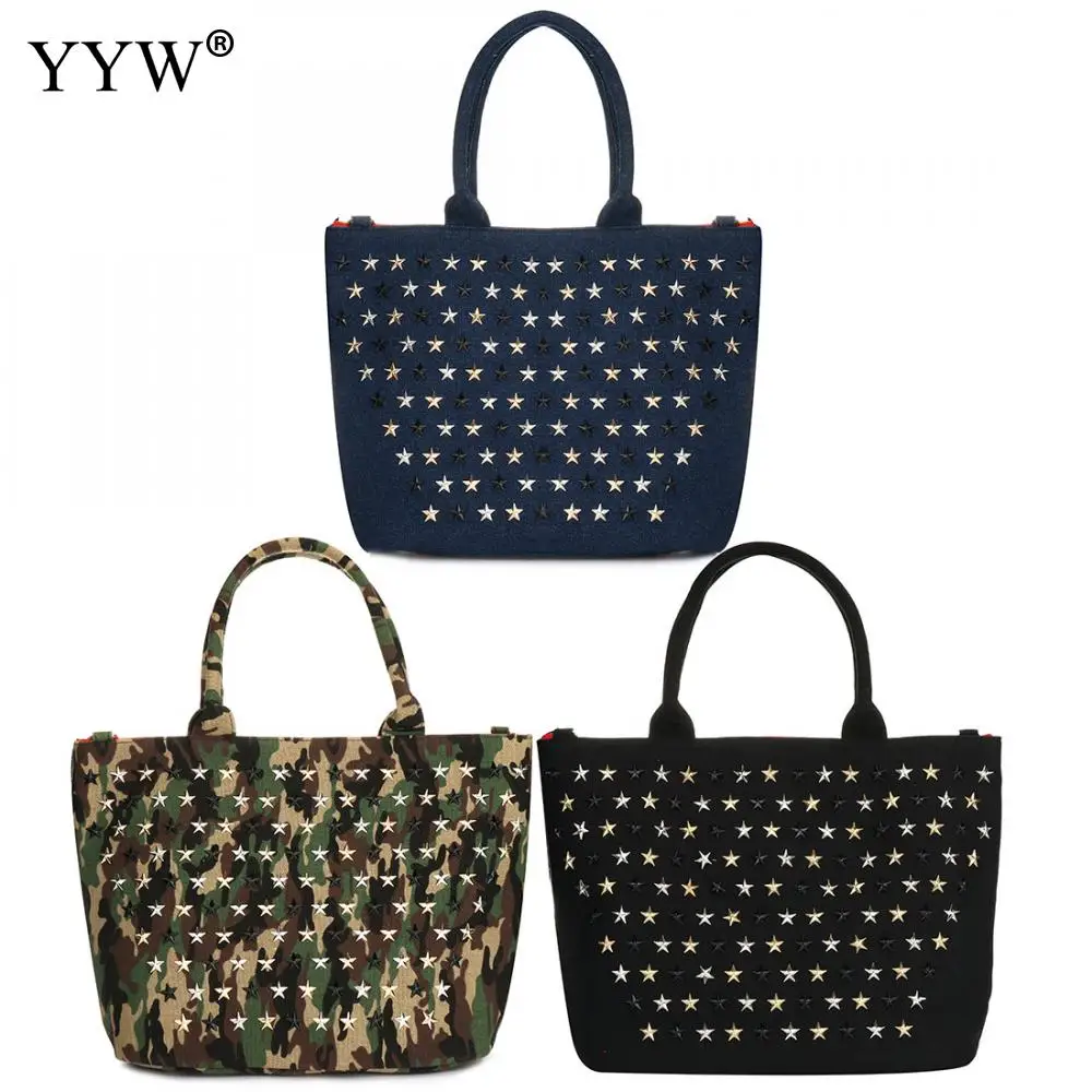Женская Холщовая Сумка через плечо с заклепками в стиле панк, модная камуфляжная Дамская Большая вместительная сумка, черная сумка с шипами, 2019