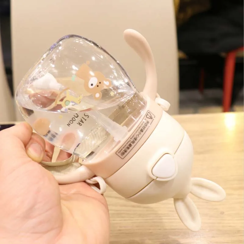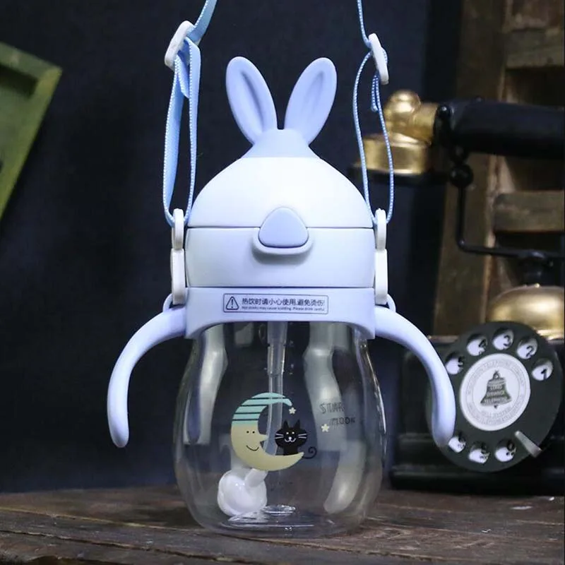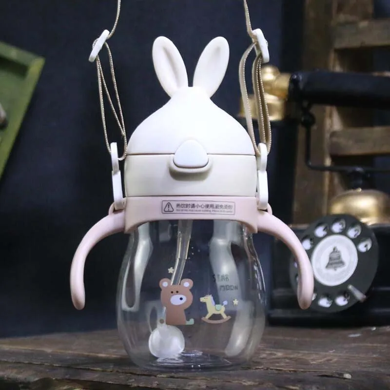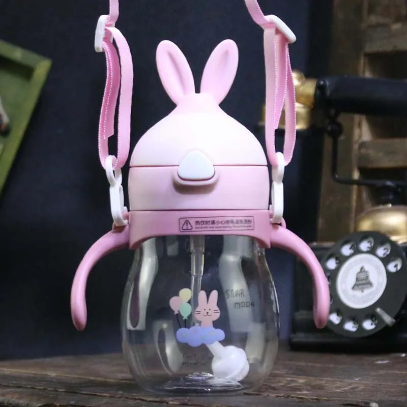 Детская Бутылочка с кроликом, бутылочки для кормления с трубкой, пылезащитный чехол, Тритан, Детская Бутылочка для питья молока, питьевая вода, сок, молоко