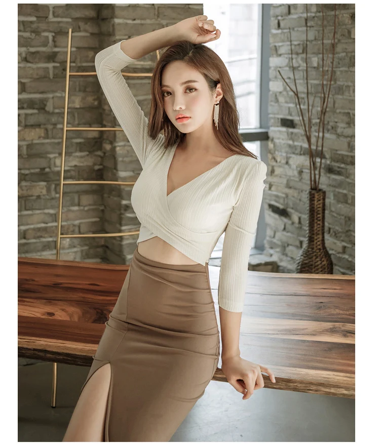 Женское облегающее платье с v-образным вырезом, Белое Платье макси с разрезом + верблюжья Лоскутная Ткань, модель RQ15, 2019