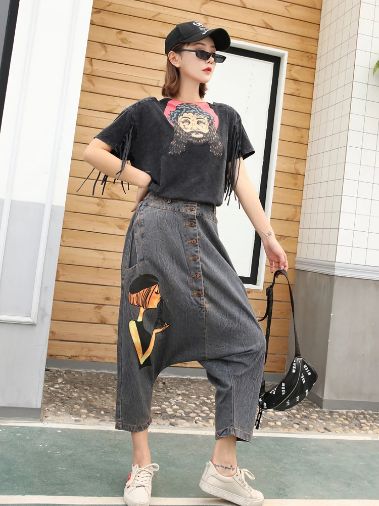 QING MO женские штаны-шаровары с высокой талией длиной до щиколотки, женские брюки с рисунком героев мультфильмов ZQY209