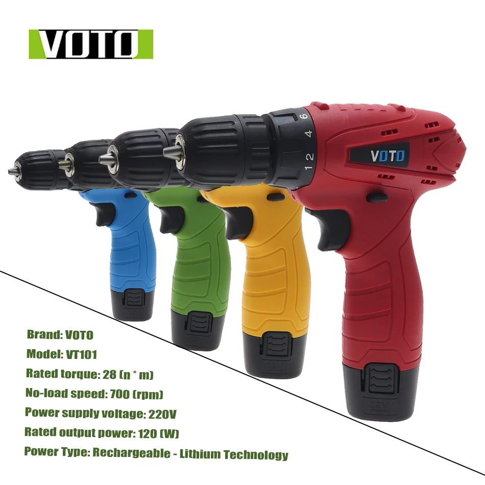Бренд: VOTO Модель: VT101 Тип: ручная дрель Скорость без нагрузки: 700 (об/мин) Тип источника питания: технология перезаряжаемой литиевой батареи Напряжение источника питания; 220 В Номинальная выходная мощность: 120 (Вт) Номинальный крутящий момент: 28 (n * m) Структура электрической дрели: пистолет Регулируется ли скорость электрической дрели: двойная скорость Метод зажима сверла: сверлильный патрон Размеры: 26,5х23,5х7 (см) Диаметр патрона: 10 (мм) Максимальный диаметр сверла: 10 (мм) Номинальная скорость: 600 (об/мин) Объем бурения-Дерево: 20 (мм) Емкость бурения-алюминий: 10 (мм) Емкость бурения-сталь: 10 (мм) Вес: 1,2 (кг) Вес нетто 1,1 Обратное Направление: Да