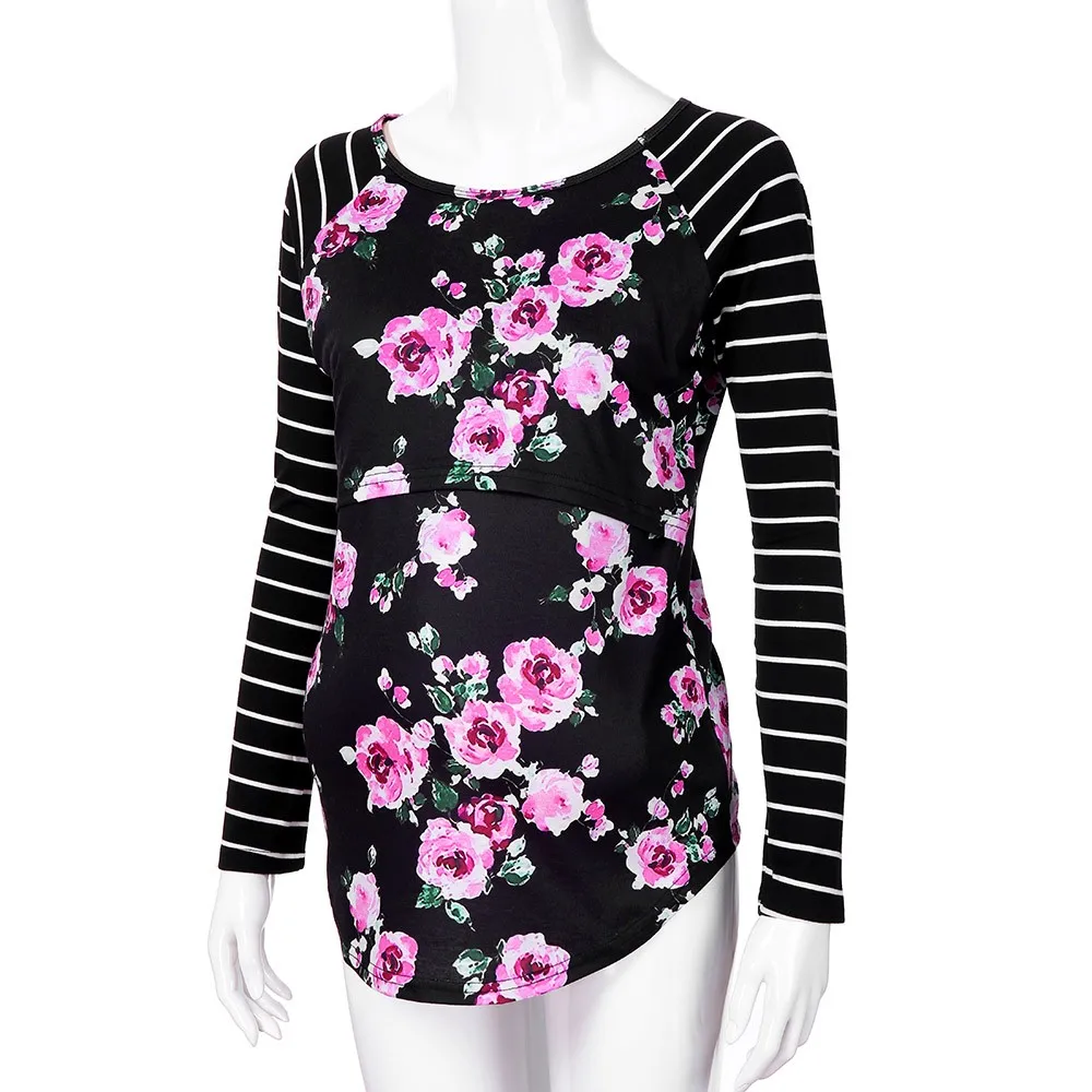 Женская полосатая блузка с длинными рукавами для беременных
