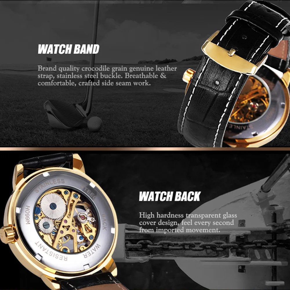 Мужские часы 3D полый гравировальный чехол Римский номер Скелет циферблат механические часы