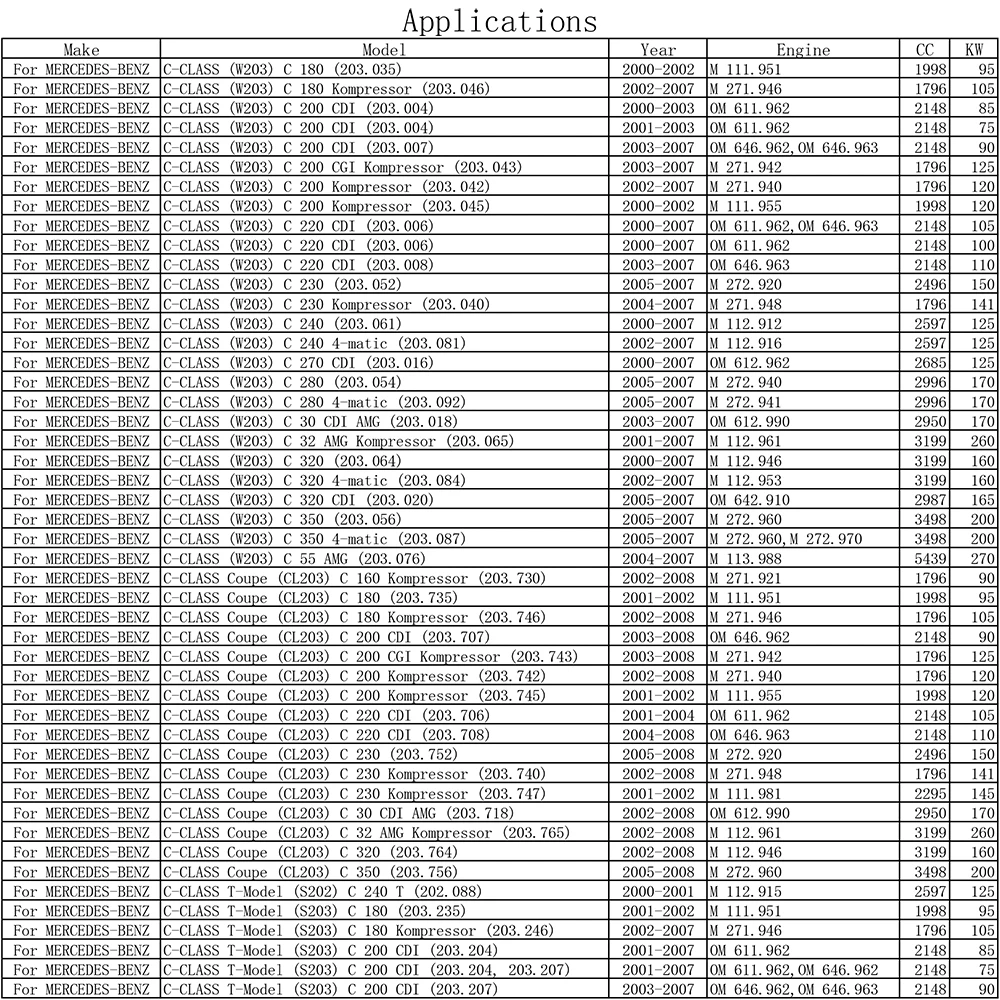 Для Mercedes-Benz CLC-CLASS (CL203) 2008/05 - 2011/06