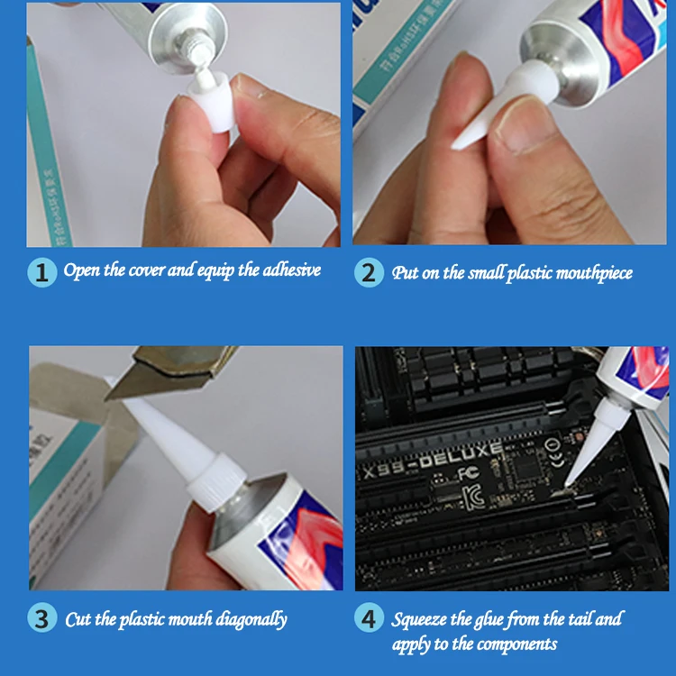 Применимый Тип: специальный теплопроводящий клей для высокомощных нагревательных продуктов Подходит для склеивания и теплопроводности высокотемпературных рабочих продуктов