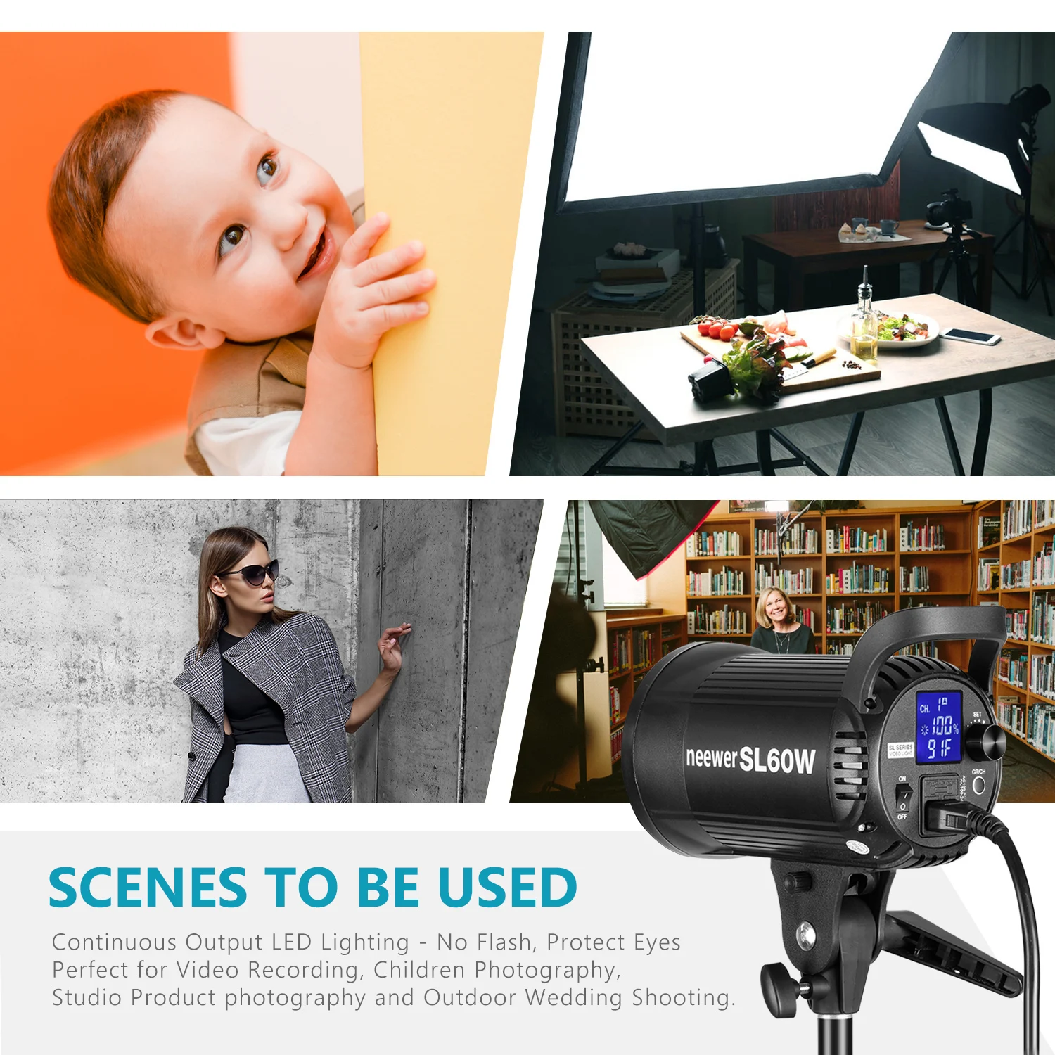 SL-60W светодиодный видео Светильник обеспечивает высокую светильник яркость и индекс цветопередачи с Мощный светодиодный бусины. Он создает устойчивый светильник и даже освещение для видеозаписи, фотосъемки и свадебной съемки и т. Д. В SL-60W подходит для фотографирования вне помещения, Флуоресцентный светильник ing, детских фотографий в свадебном стиле, так как это сплошные Выход светильник ing, нет флэш-Это защитит вашего ребенка в центре внимания.