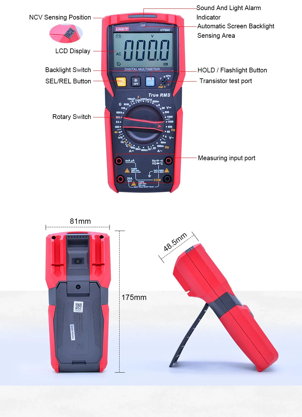 UT89X/UT89XD являются 6000 счетами истинных RMS цифровых mul timeters. Уникальной особенностью является NCV functi, на котором можно быстро определить живое и neut ral провода через светильник интенсивности. В additon, UT89X измеряемая температура и проверка провода в реальном времени, UT89XD может выполнять светодиодный замеры. Вся серия разработана с аудио/визуальным сигналом, что позволяет вам более интуитивно наблюдать за результатом теста. Фонарик и функции автоматической подсветки также удобны при измерении в темноте. С эргономичным дизайном и прочным двойным впрыском, UT89X/UT89XD серии являются идеальными измерительными инструментами для электриков и любителей.