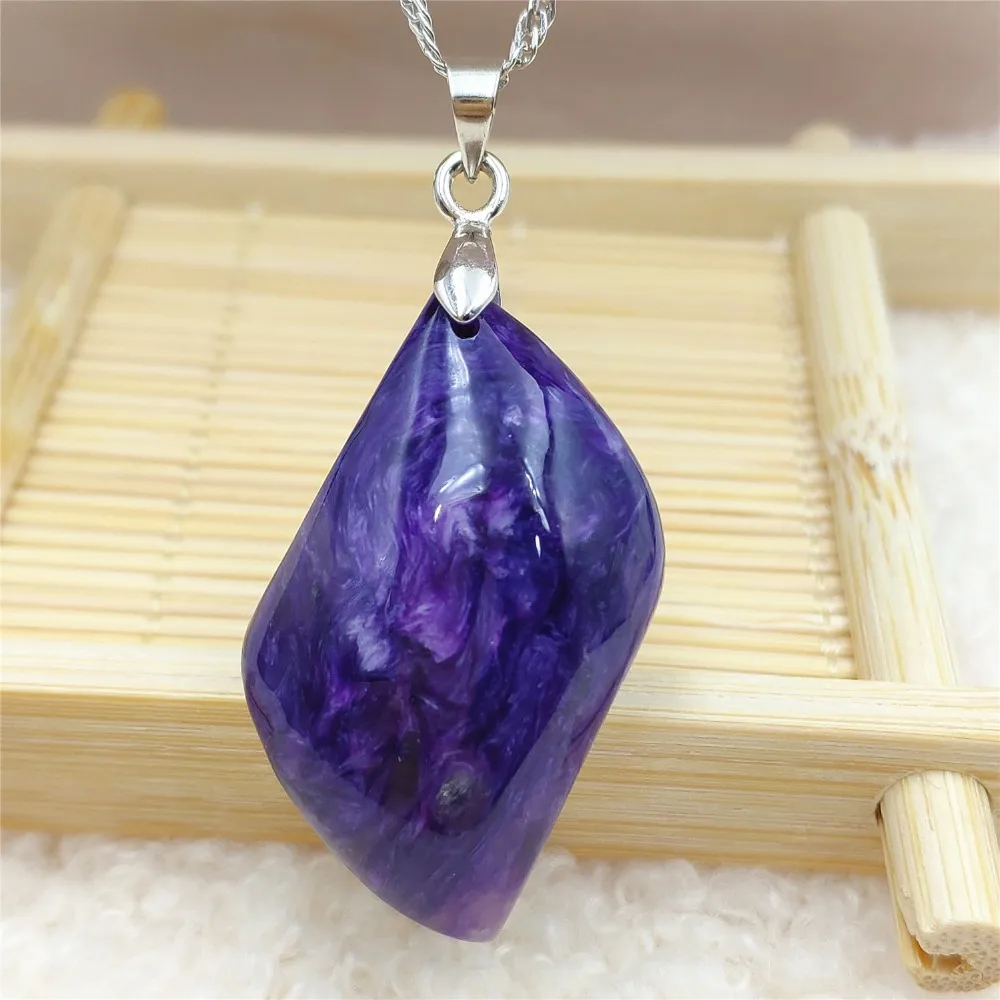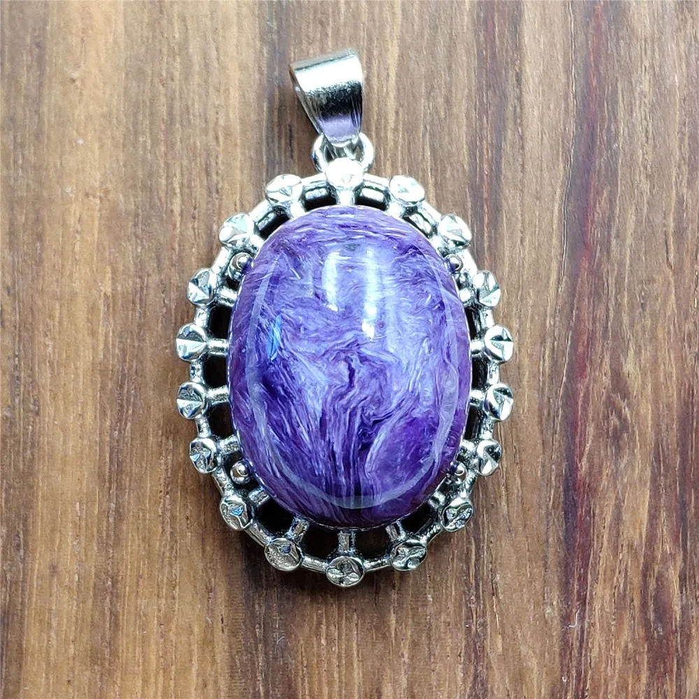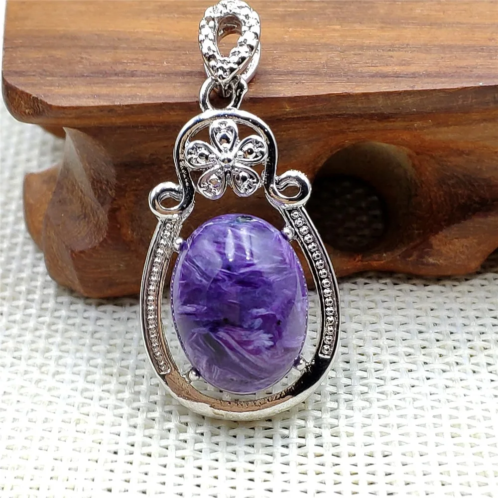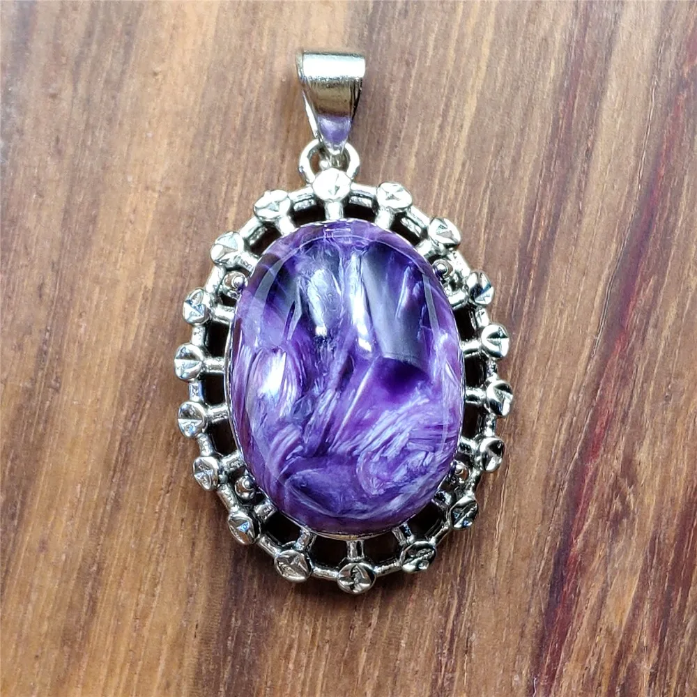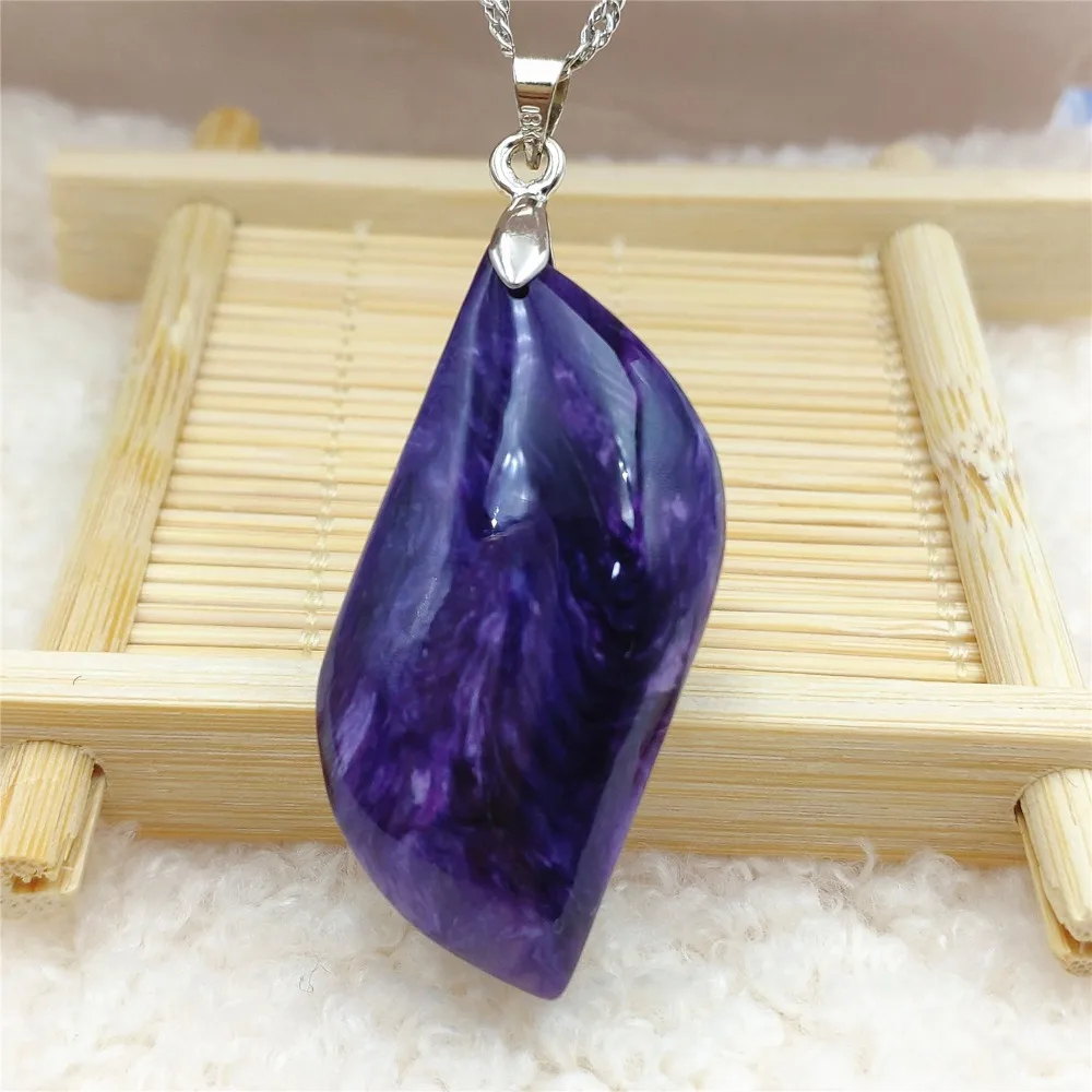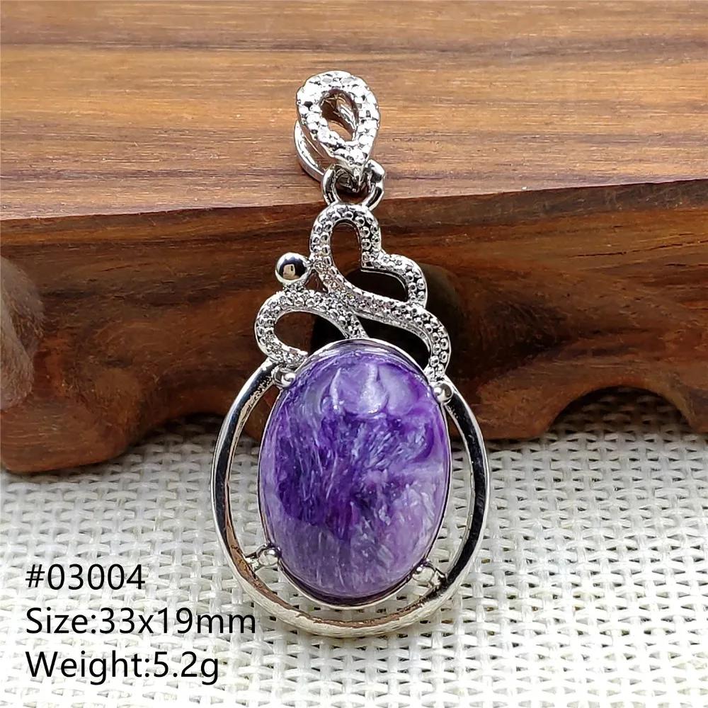 Натуральный фиолетовый Charoite кулон 33x22 мм бусины Кристалл Камень ювелирные изделия Мужчины Женщины любовь подарок 925 серебро ожерелье кулон AAAAA