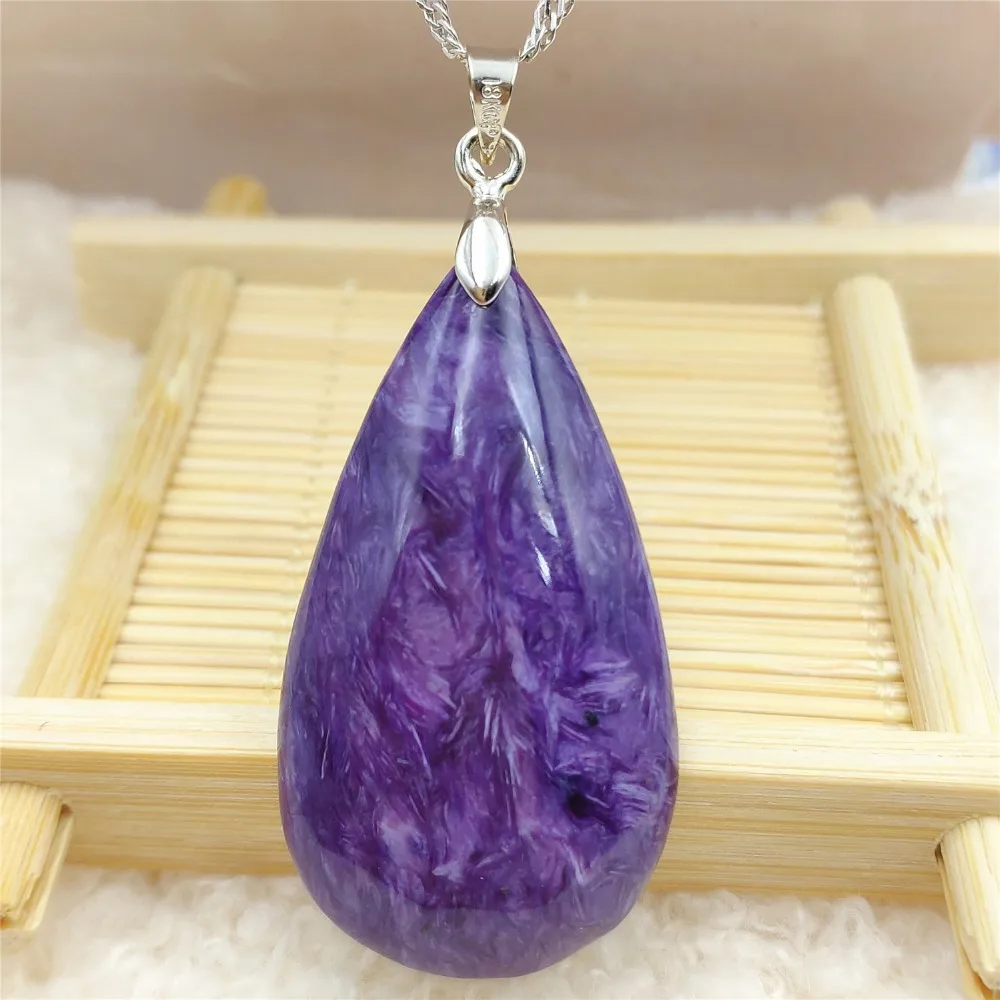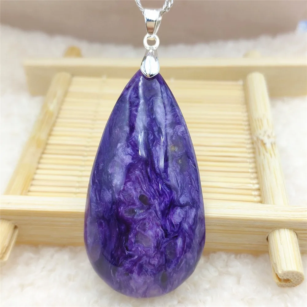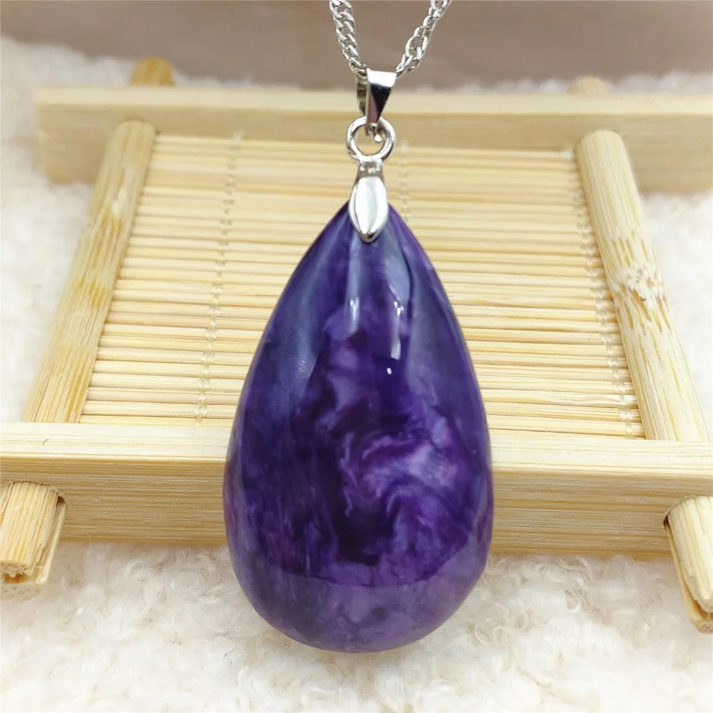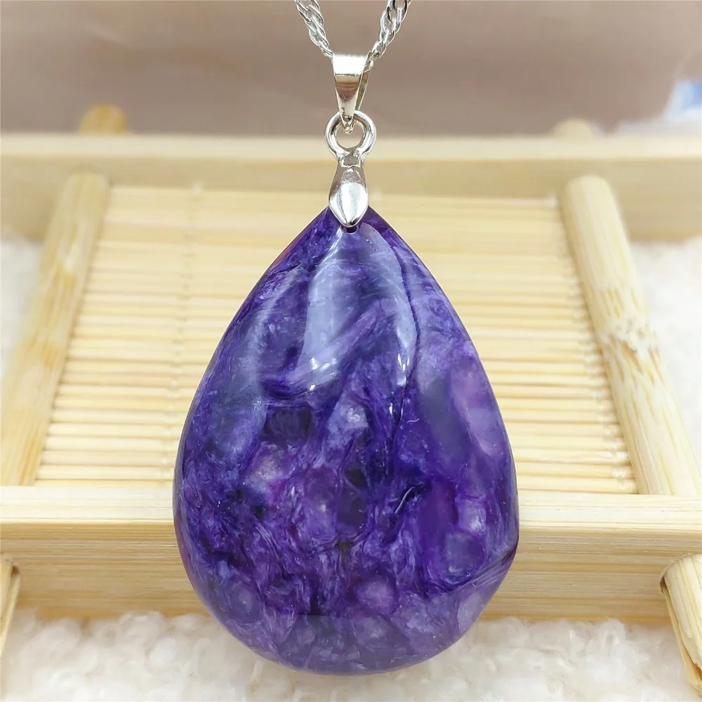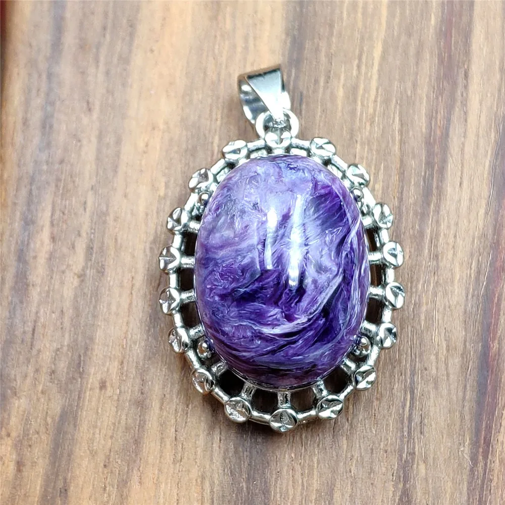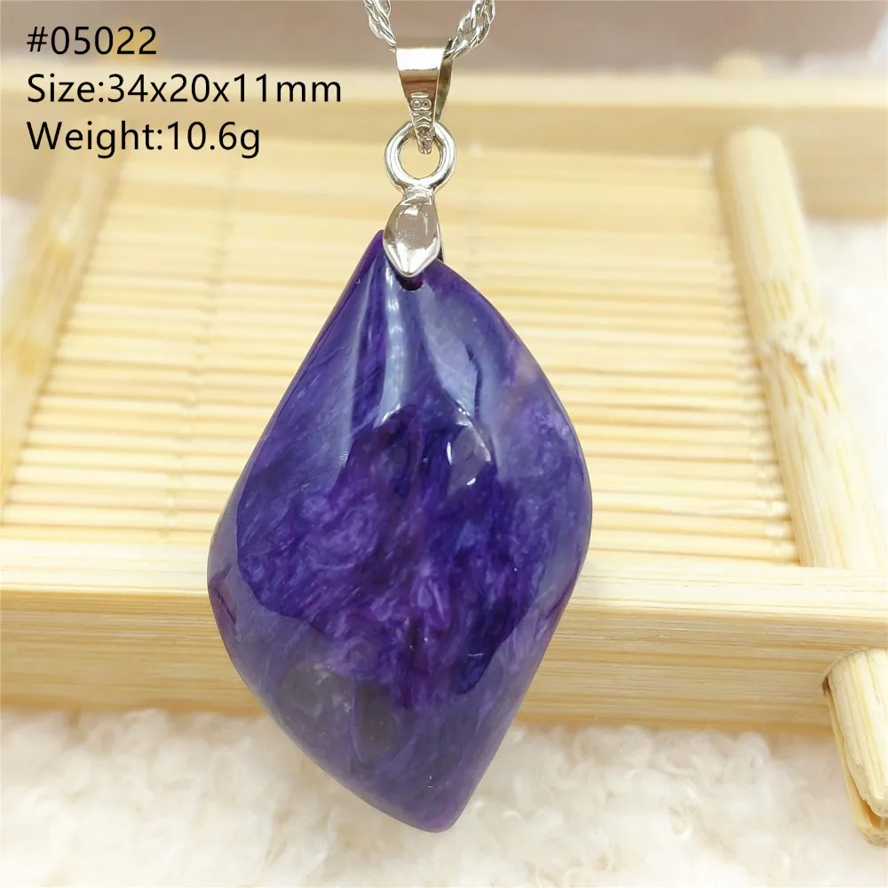 Натуральный фиолетовый Charoite кулон 33x22 мм бусины Кристалл Камень ювелирные изделия Мужчины Женщины любовь подарок 925 серебро ожерелье кулон AAAAA