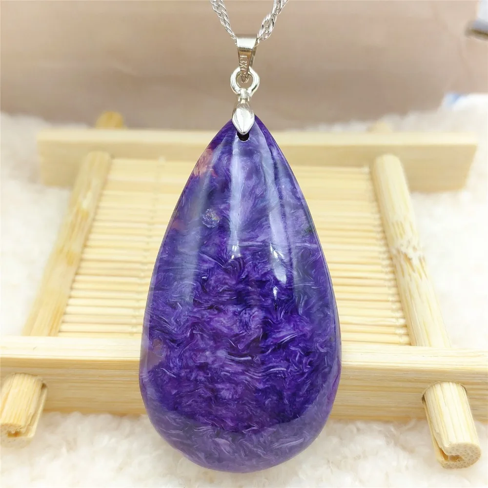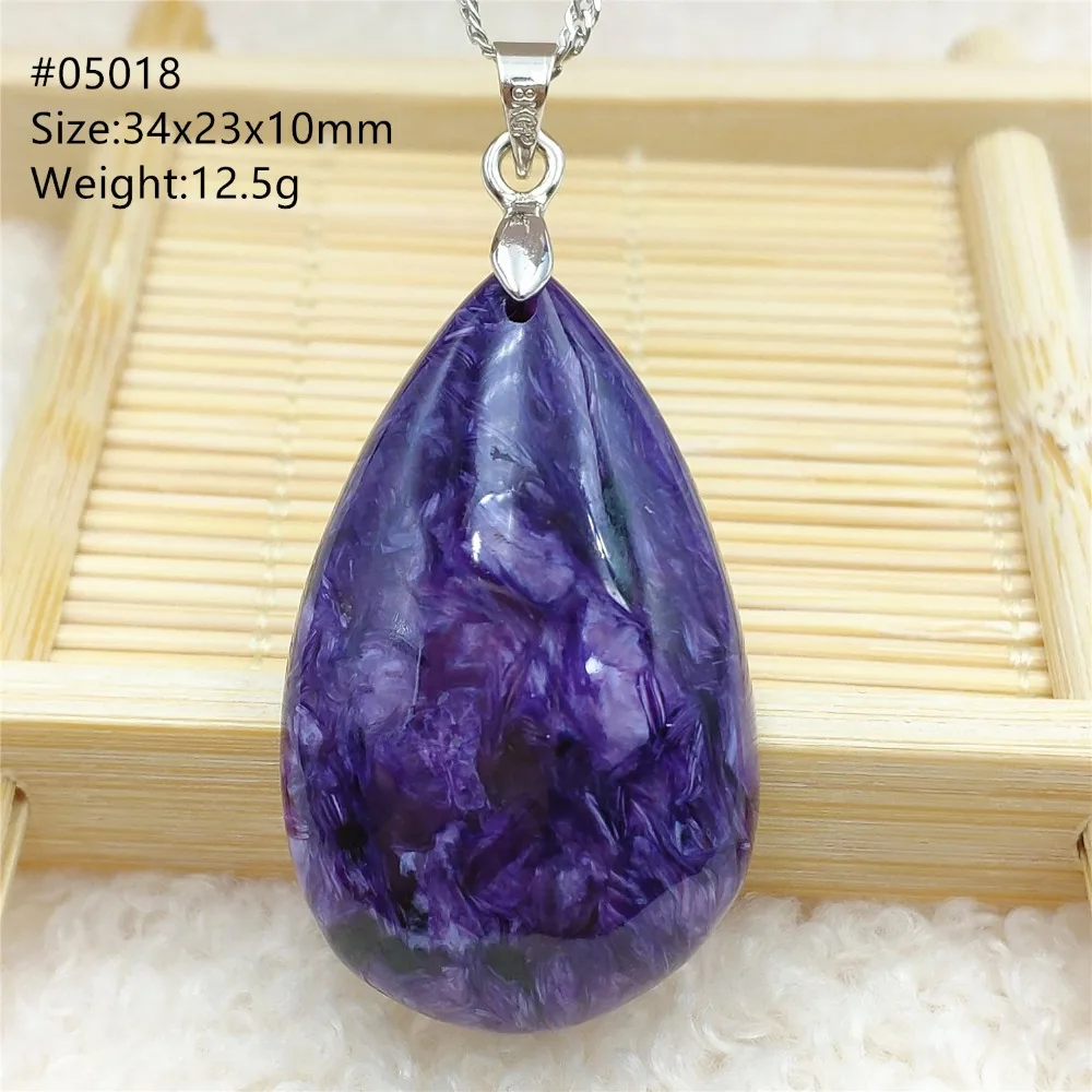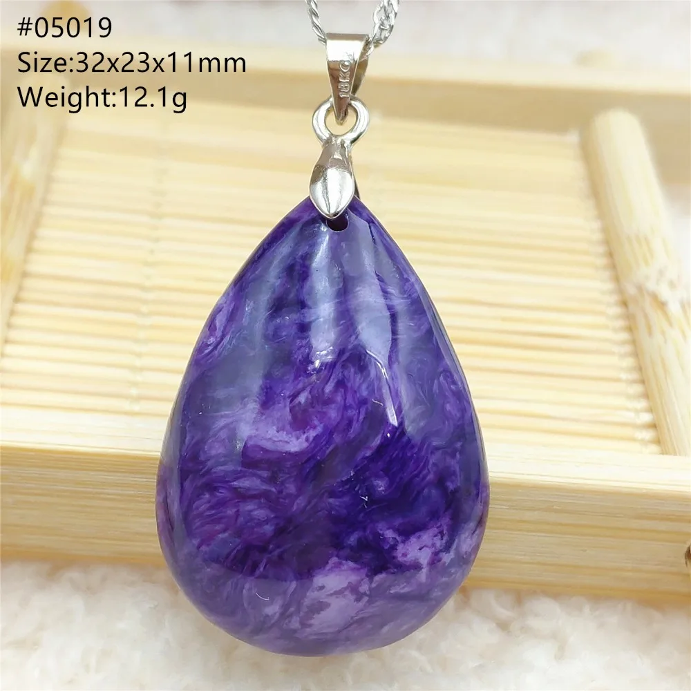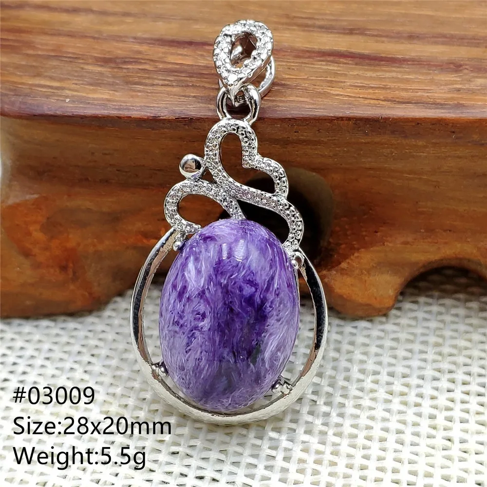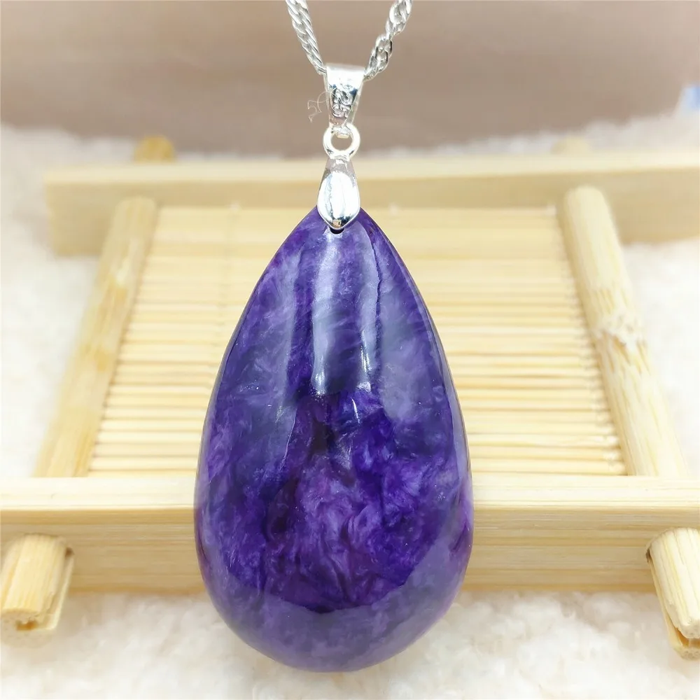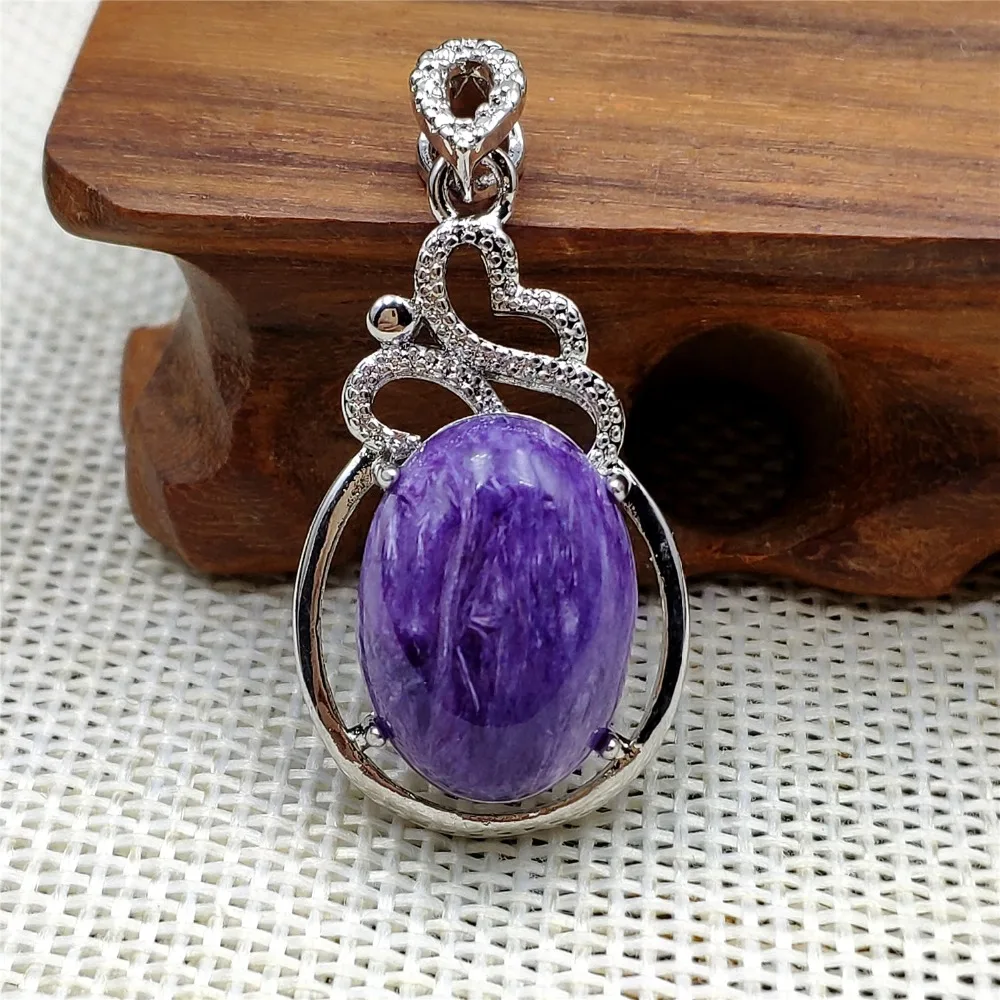 Натуральный фиолетовый Charoite кулон 33x22 мм бусины Кристалл Камень ювелирные изделия Мужчины Женщины любовь подарок 925 серебро ожерелье кулон AAAAA