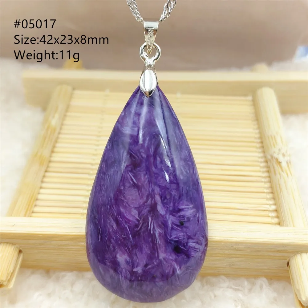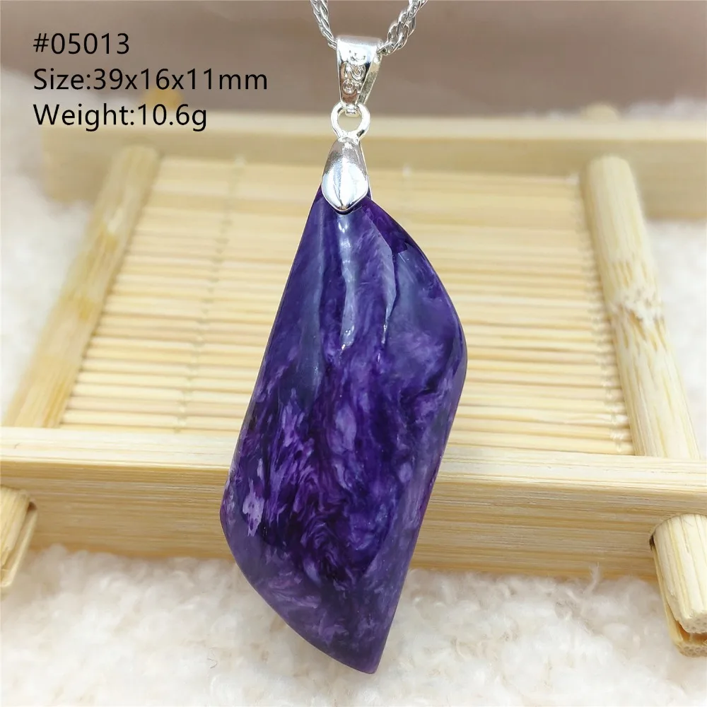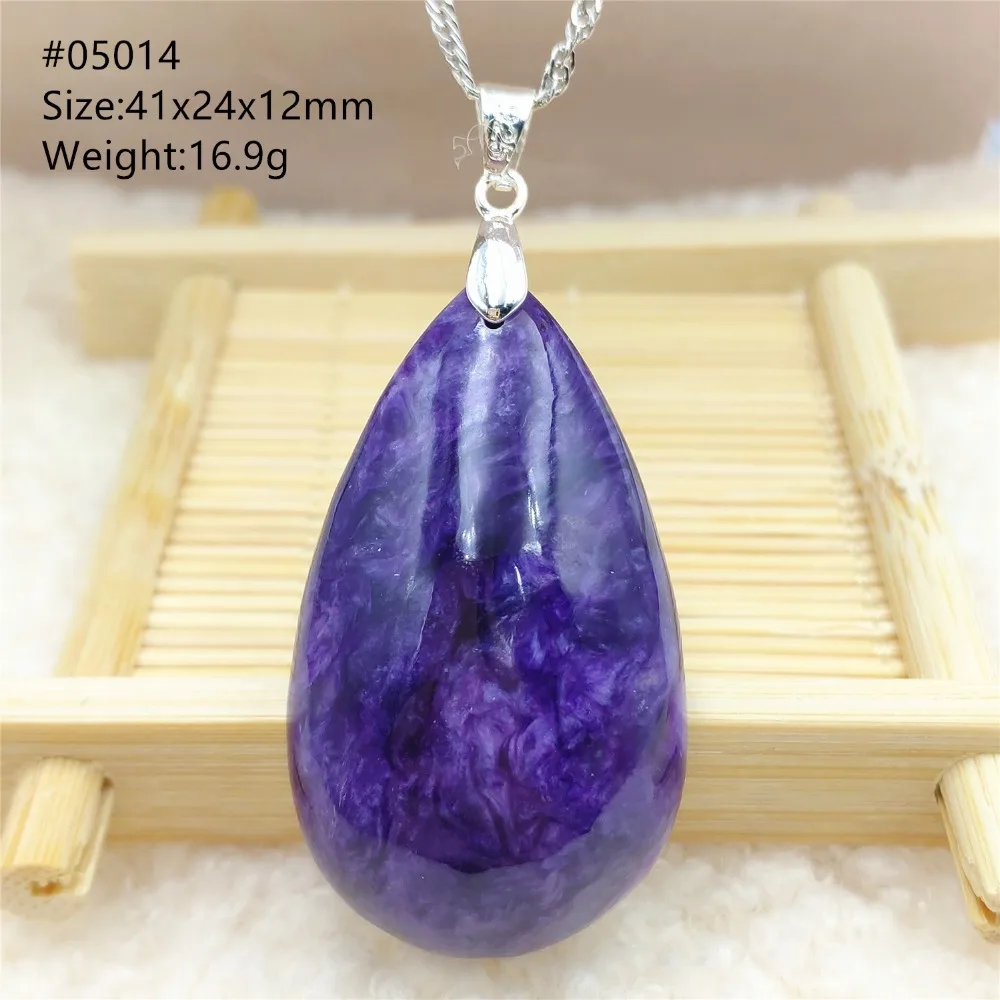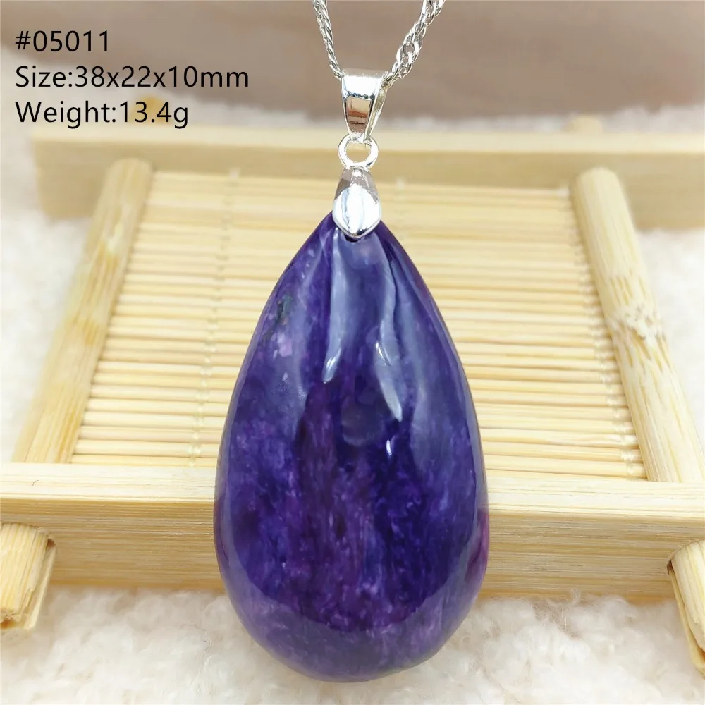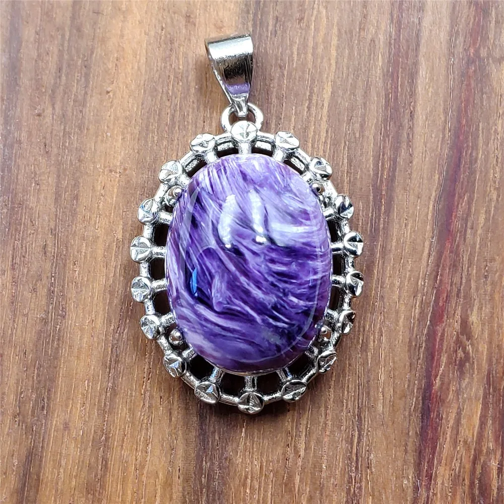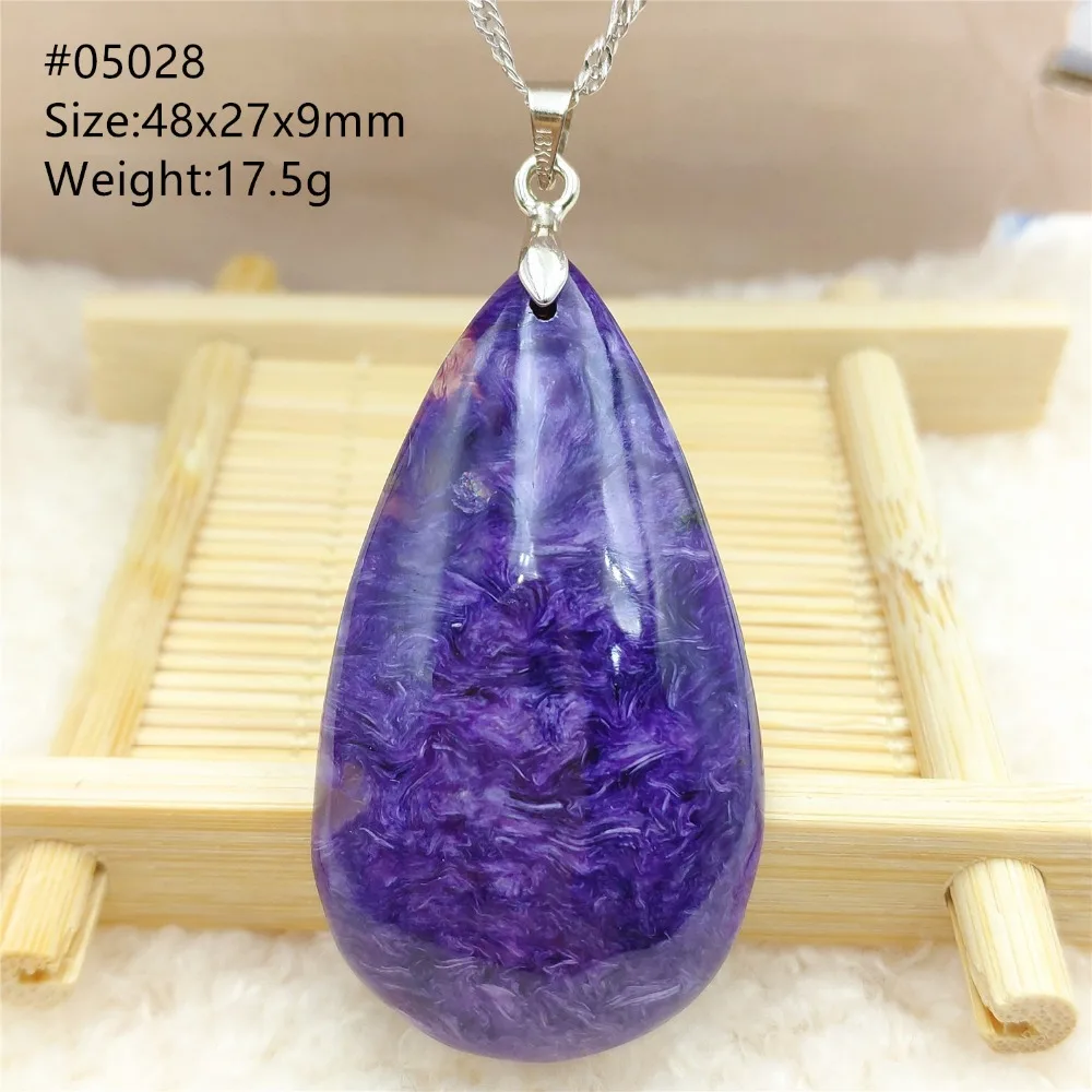Натуральный фиолетовый Charoite кулон 33x22 мм бусины Кристалл Камень ювелирные изделия Мужчины Женщины любовь подарок 925 серебро ожерелье кулон AAAAA