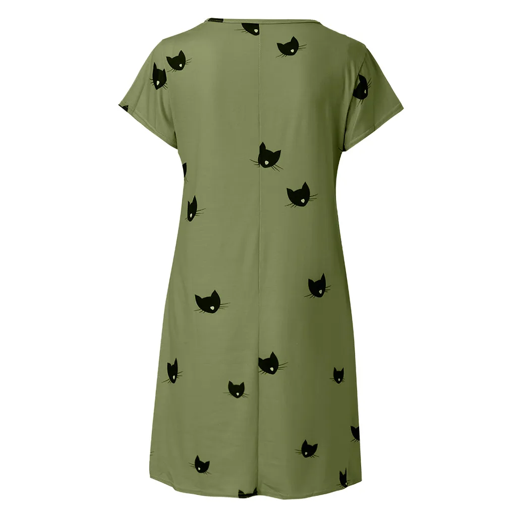 Женское повседневное летнее платье с рисунком кота, летнее платье с v-образным вырезом, модные вечерние пляжные платья, новинка 2019