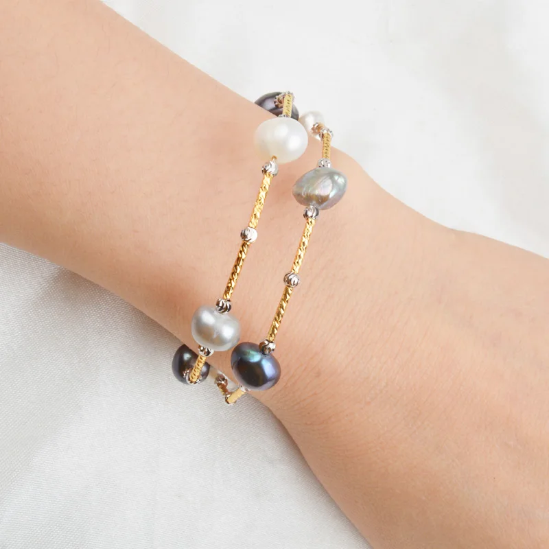 Размер жемчуга: 9-10 мм Форма жемчуга: барокко Цвет жемчуга: белый/черный/серый Жемчужный Блеск: очень хорошо Поверхность жемчуга: некоторые изъяны