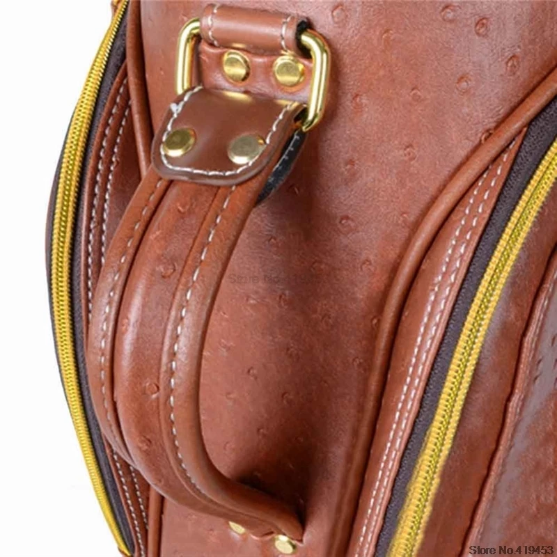 1) изготовлен из высококачественной искусственной кожи пу, прочный, прочный и устойчивый к загрязнению. 2) сумка с 5 отверстиями, может быть установлена 13 клубов, позволит вам проверить место для правильного использования в клубе. 3) Ручка сумки изготовлена из кожи, высокого класса, металлические знаки, благородная гарантия качества. 4) Основа использует высококачественные инжекционные пластмассы для литья под давлением, пакет обеспечивает стабильность для мяча. 5) легко носить с собой зонтик.